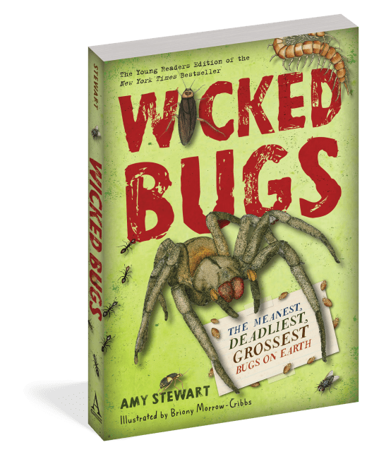 Did you know there are zombie bugs that not only eat other bugs but also inhabit and control their bodies? There’s even a wasp that delivers a perfectly-placed sting in a cockroach’s brain and then leads the roach around by its antennae — like a dog on a leash. Scorpions glow in ultraviolet light. Lots of bugs dine on corpses. And if you want to know how much it hurts to get stung by a bullet ant (hint: it really, really hurts), you can consult the Schmidt Sting Pain Index. It ranks the pain produced by ants and other stinging creatures. How does it work? Dr. Schmidt, the scientist who created it, voluntarily subjected himself to the stings of 150 species.Organized into thematic categories (Everyday Dangers, Unwelcome Invaders, Destructive Pests, and Terrible Threats) and featuring full-color illustrations by Briony Morrow-Cribbs, Wicked Bugs is an educational and creepy-cool guide to the worst of the worst of insects, arachnids, and other arthropods. This is the young readers adaptation of Amy Stewart’s bestselling book for adult readers.