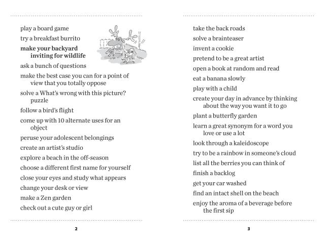 Put down your phone, close the lid on your laptop, and get back in touch with the wonders of the world around you. With thousands of ideas for simple, beautiful things to do instead of scrolling down the rabbit hole of cyberspace, this healing little book offers the opportunity, 5,203 times, to slow down, look up, and rediscover what makes you feel nourished and grounded as a human being. With illustrations throughout by Scot Ritchie.