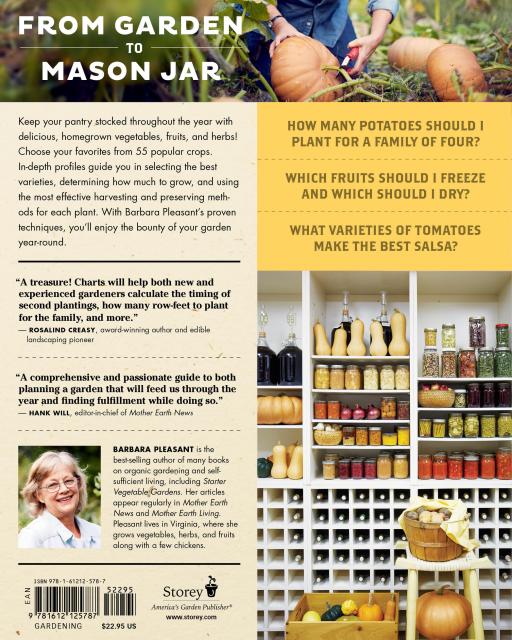 “Barbara Pleasant’s most comprehensive and passion-driven work to date helps beginning and experienced gardeners plan a garden that will feed them through the year and find great fulfillment while doing so.” — Hank Will, editor-in-chief of Mother Earth News