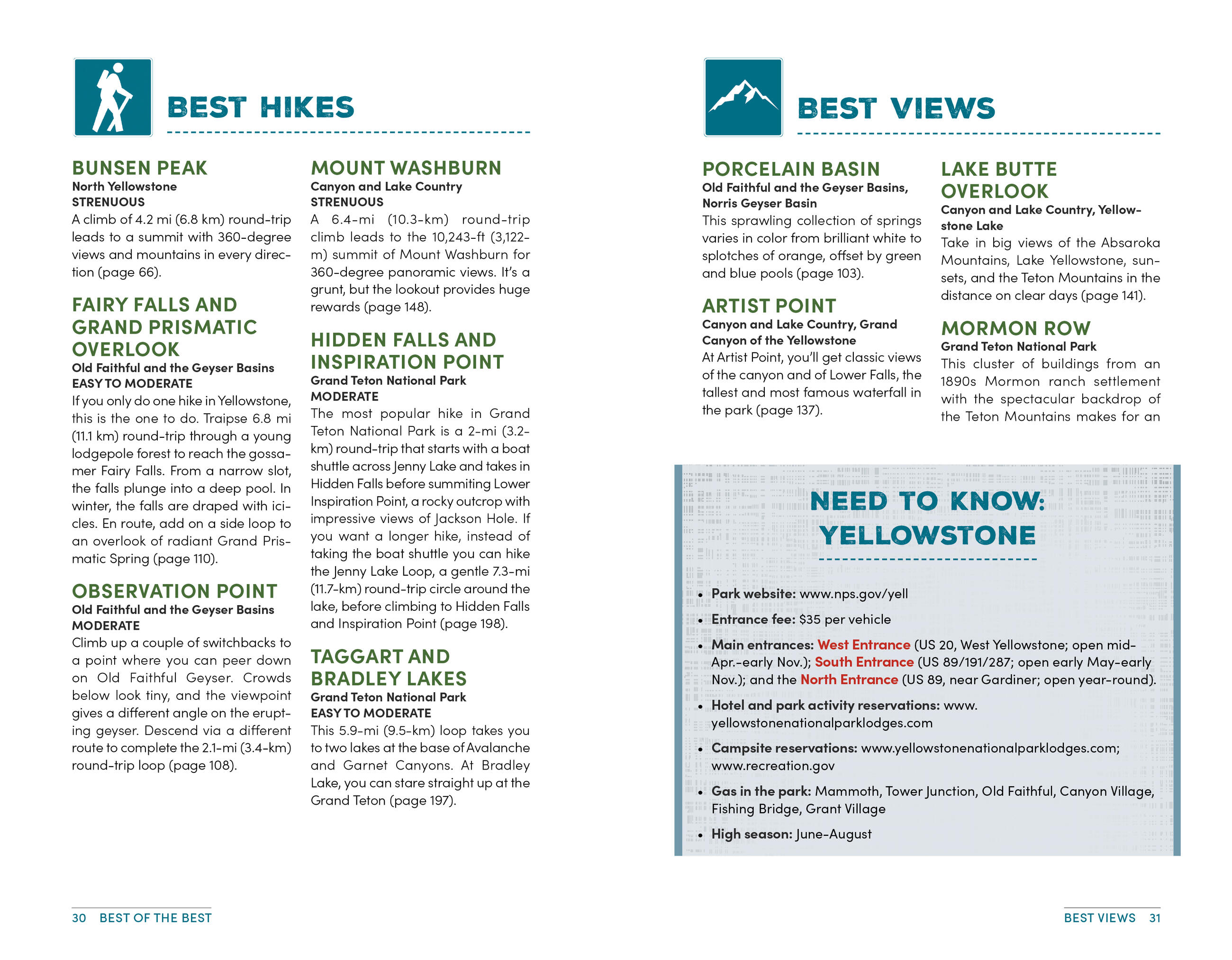 - The top hikes in Yellowstone and Grand Teton: Whether you’re looking to stretch your legs for a couple hours or challenge yourself to an epic trek, you’ll find trailheads, detailed trail descriptions, individual maps, mileage, and elevation gains