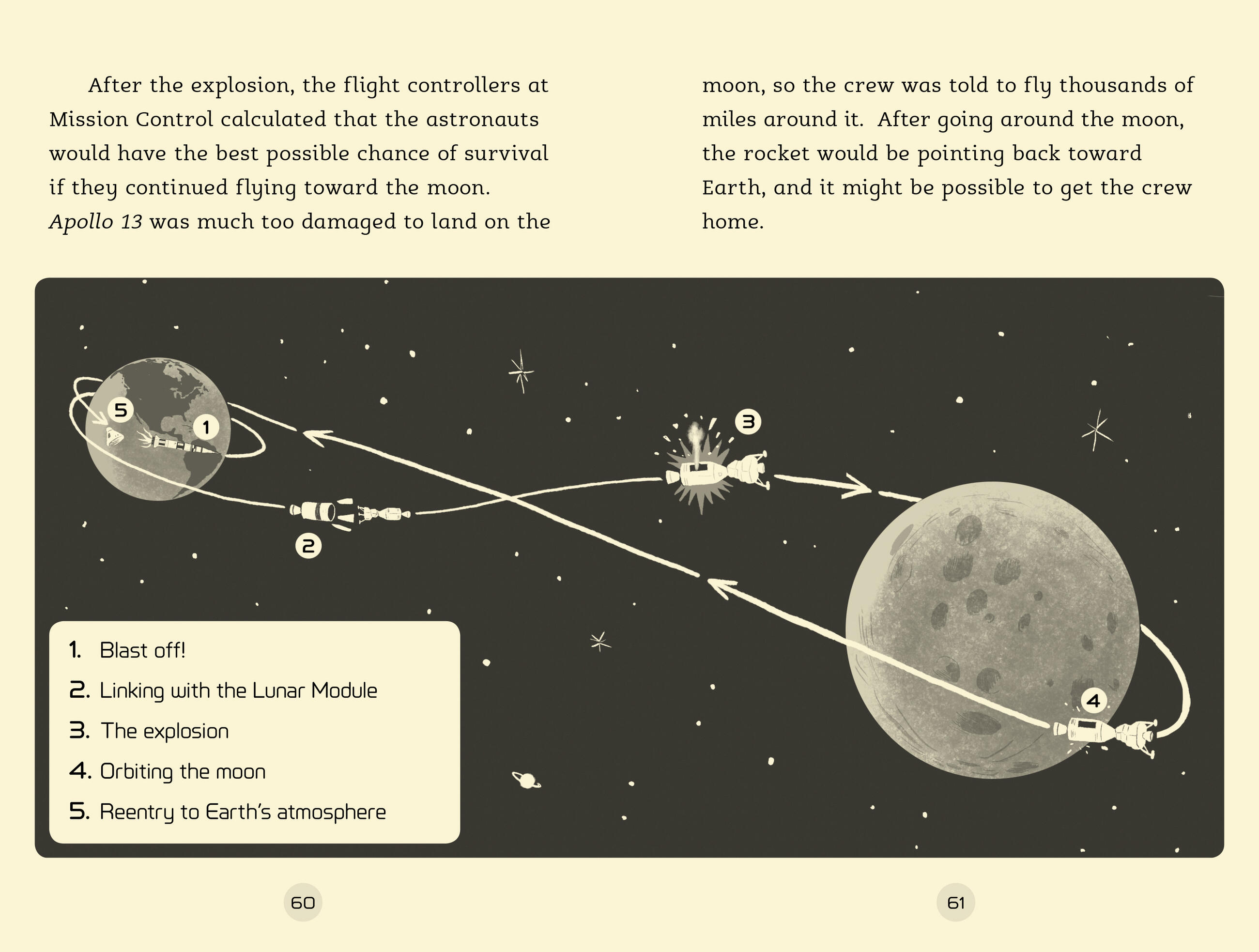 April 11, 1970: Apollo 13 was launched from the Kennedy Space Center in Florida. It should have been the third manned Apollo mission to land on the moon. But when an explosion on board damaged the spacecraft, it became a perilous and near-impossible fight for survival. Battling to get back to Earth, the crew on board traveled further into space than any humans had done before . . .