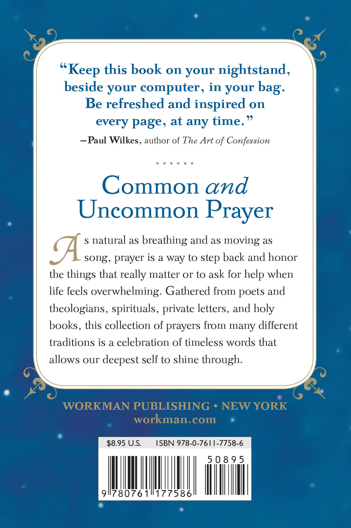 Gathered from holy books and prayer books, from songs and spirituals, spoken traditions and poets, it is an unexpectedly approachable collection of common and uncommon prayers from around the world. The entries, one per page or spread, are chosen for their depth of feeling, beauty of expression, spiritual intensity, and sense of the universal. The book is organized into broad categories of praise, entreaty, contemplation, mourning, and grace; and two indexes—one by authorship, and the other by topic—make it immediately accessible.