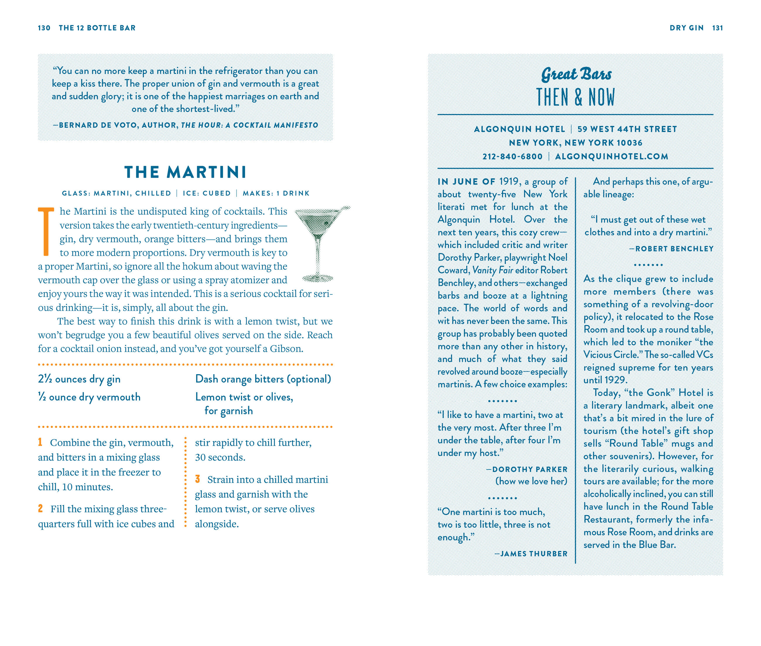 “A great home bar is an abridged one… The 12 Bottle Bar offers tips on stocking enough liquor to keep your cocktail list large but your investment small.”