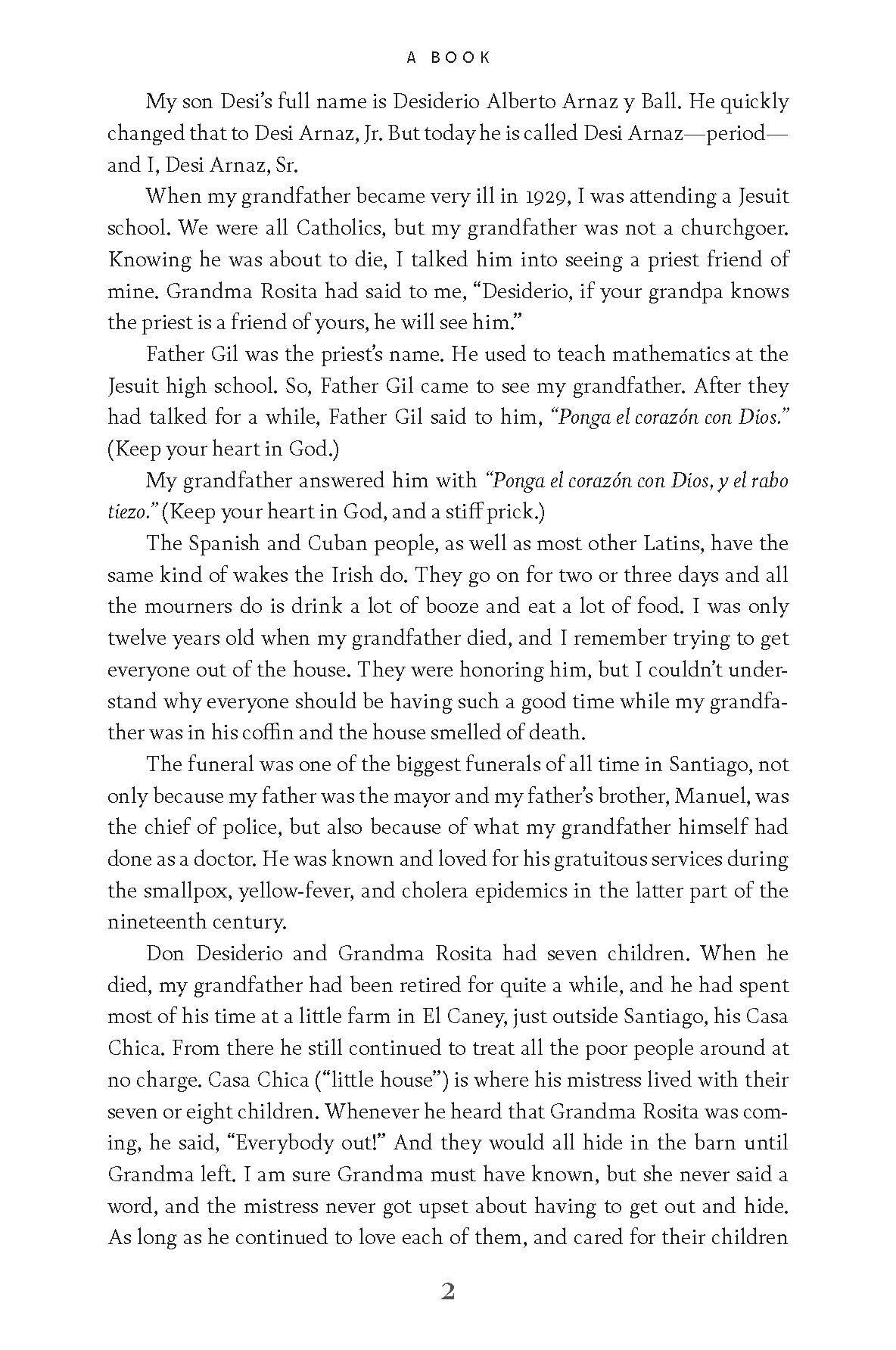 In the author’s own words: “Welcome to A Book, in which I try to explain how a kid from Cuba found a way to make a living in the United States. It’s all here—the good, the bad, the beautiful, the ugly, the unbelievably lucky breaks, and the heartbreaking failures. . . . You will learn what Lucy and I had to do to convince people we could play husband and wife in I Love Lucy. Shortly afterward Lucie and Desi Jr. were born and our world was paradise. The irony of it all is how our undreamed-of success, fame, and fortune turned it into hell. It wasn’t easy to write about all of it, but as my son said, ‘There’s only one way to do it, Dad. Tell it like it was.’”