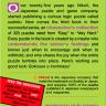 Over twenty years ago Nikoli, the Japanese puzzle and game company, started publishing a curious logic puzzle called Sudoku. The rest of the world recently joined the Sudoku craze by using computer programs to create puzzles, but Nikoli is the only company that still crafts their puzzles the old-fashioned way: by hand. As Ad Age wrote in a profile, the Nikoli credo is “The Best Puzzles Are Made by Happy Employees.” And for solvers, it really does make a difference—there’s an elegance and symmetry to the puzzles, plus a sense of interaction. The puzzle-maker knows just when to encourage, and when to withhold. Puzzles marked “Easy,” are easy because the puzzler leads you through. Those marked “Very Hard” are exactly that—they pit your mind against the mind of the master, who seems to share the joy of that moment when one hard-won number is captured, and the entire puzzle tumbles into place.