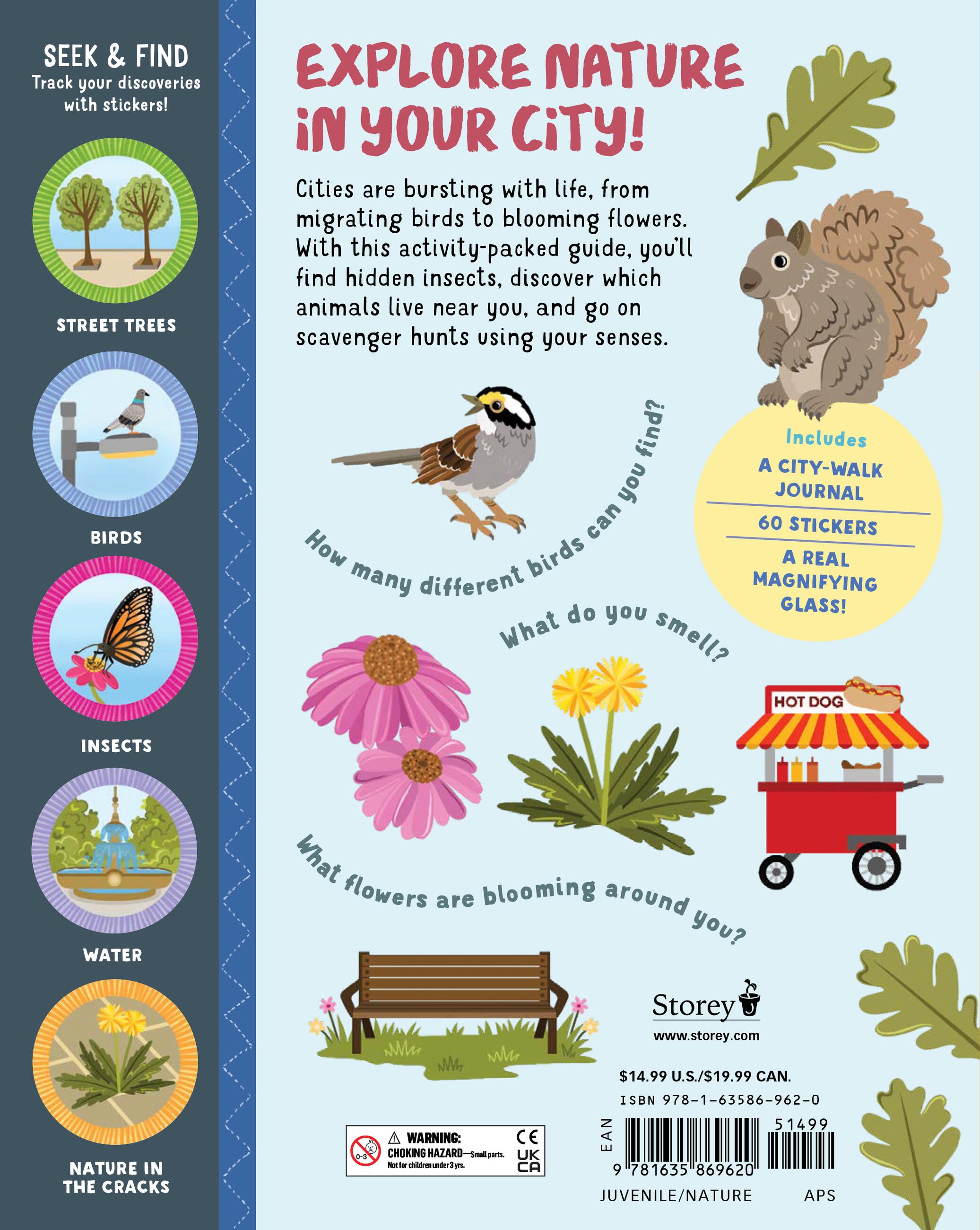 Discover hidden signs of nature in the city with this fun, interactive nature activity book for kids aged 4 to 8. Search and find birds, wildflowers, leaves, trees, squirrels, and more in urban areas, from green parks to apartment rooftops to parking lots.