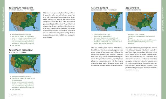 Plant This, Not That considers some of the most common non-native (and often, invasive) plants in North American gardens and suggests substitutions for more beneficial and equally beautiful natives. Each native plant listing includes a full-color photo, along with sun, water, and soil requirements; ornamental features (including bloom time and color and whether the plant has berries, fruit, and/or fall color); and the pollinators known to depend on and support that plant. Accompanying maps show every plant’s locally native range, down to the county level. The book also features an overview of how native plants contribute to our local ecosystems, where to shop for them, advice on maintaining a mostly native garden, and resources to learn more about native planting.