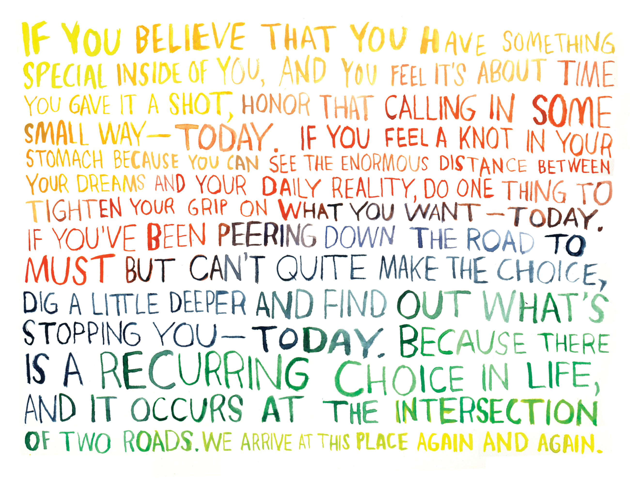 We arrive at this crossroads over and over again, and every day. And we get to choose.