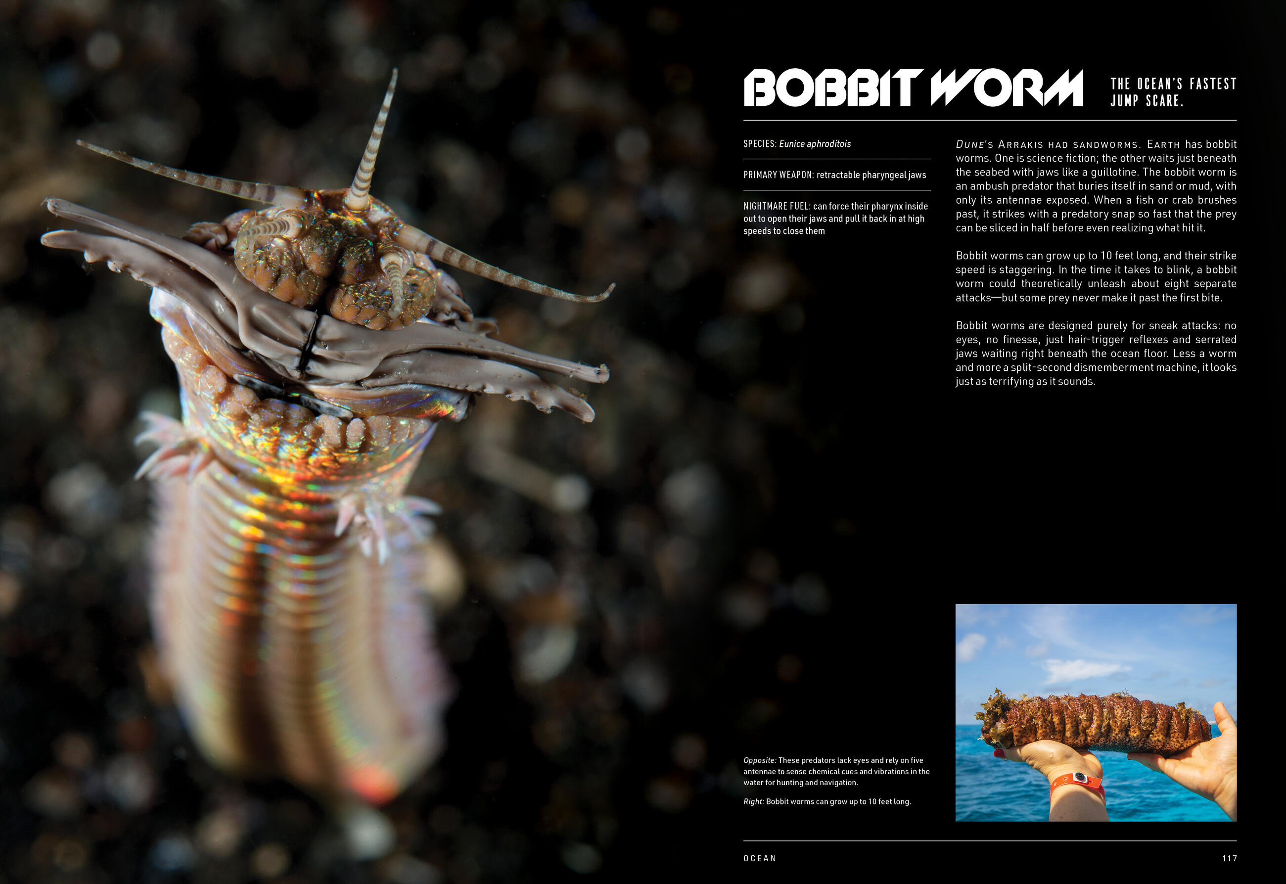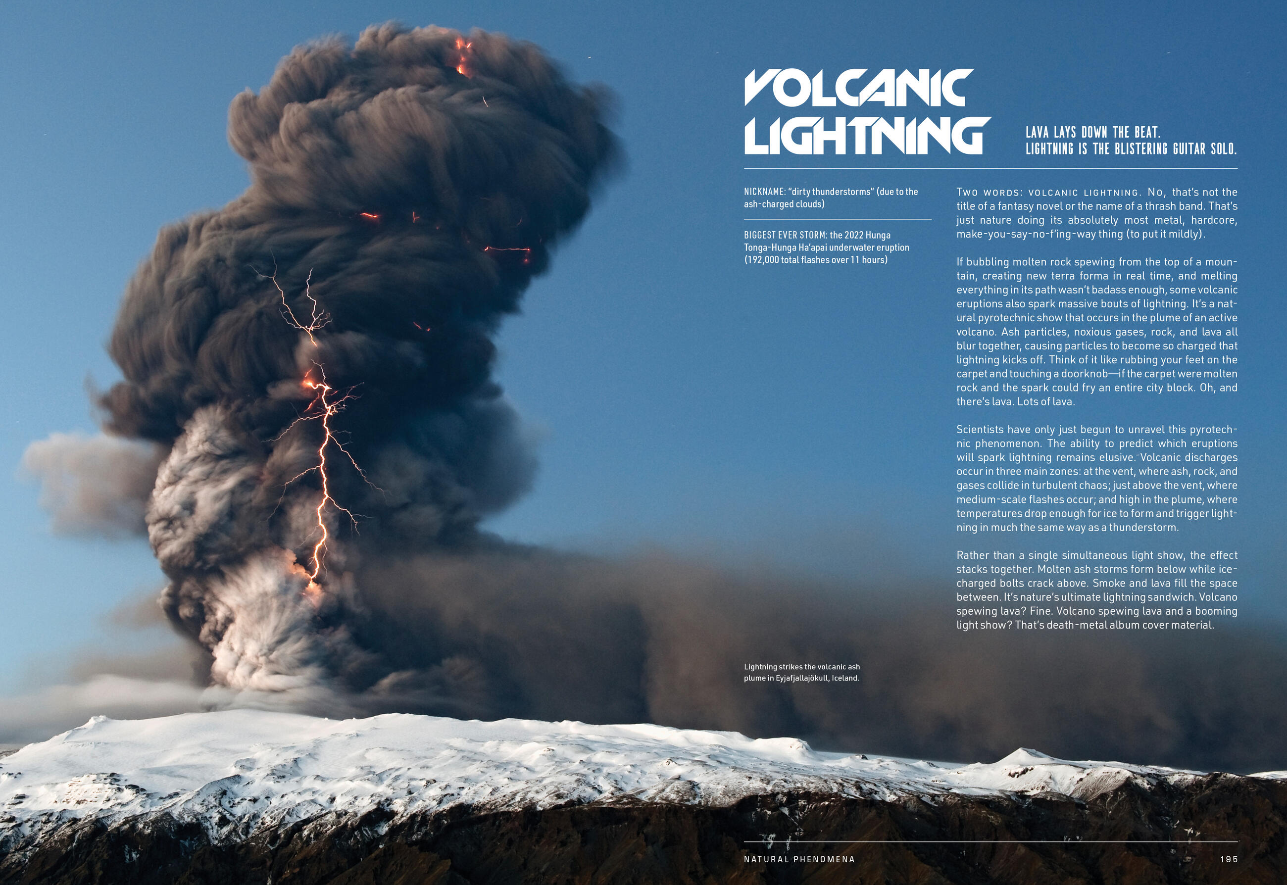 Jewel wasps that stab and zombify prey, then bury their victims alive as a living pantry for their hatching eggs. Bronzeback snakes that literally fly through the jungle air to make their attack. Sandbox trees that blast poisonous, shrapnel-like bark at up to 160 mph. With sections separated ecosystems such as forests, savannas, and oceans—plus a face-melting section on natural phenomena like volcanic lightning and avalanches—this is anything but your touchy-feely nature book.