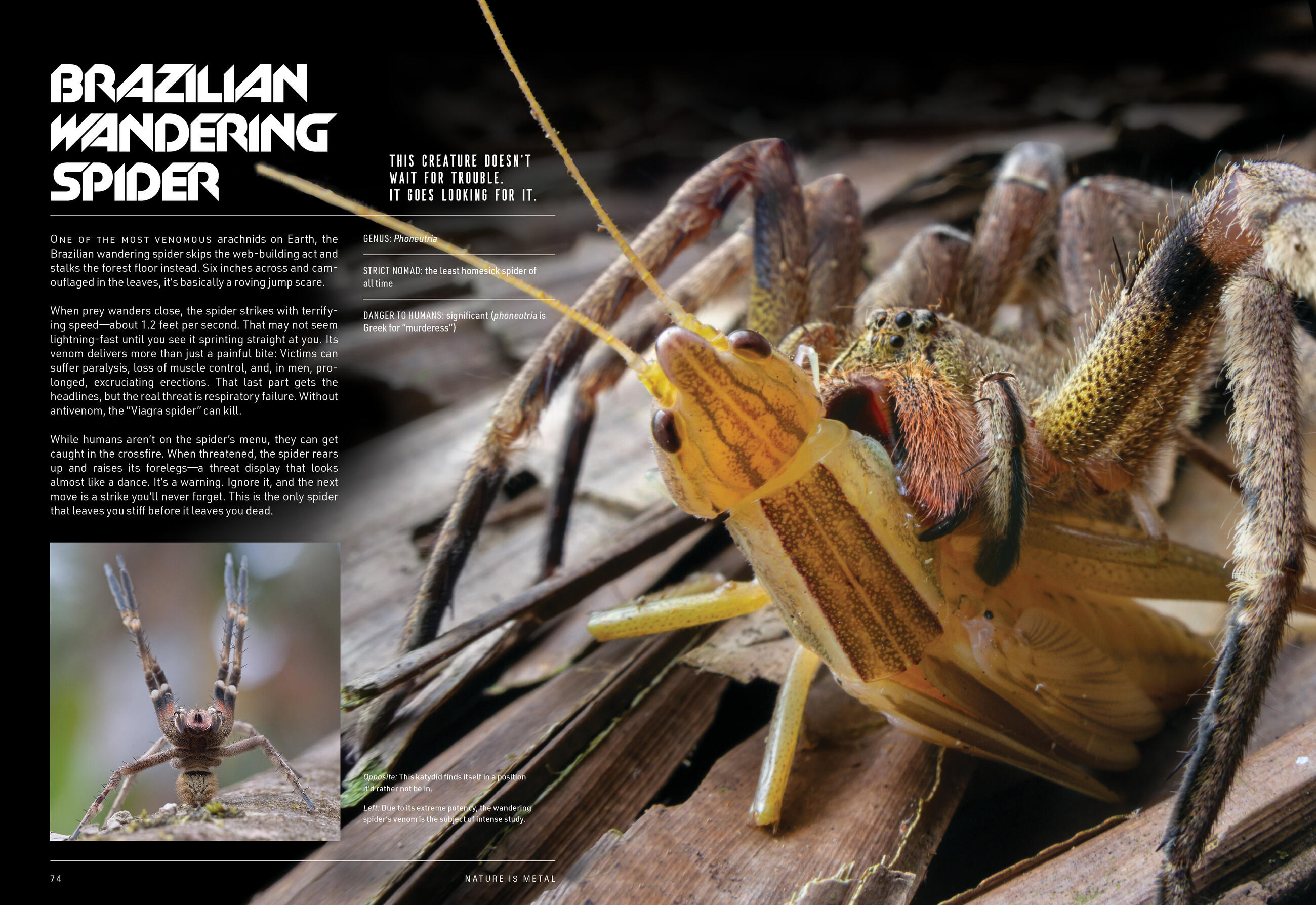 From the viral Instagram account @natureismetal, discover the most badass animals on the planet with this no-holds-barred celebration of nature at its most head-bangingly metal. Packed with dramatic—and utterly brutal—photographs and eye-popping biological info on more than 75 species that are not to be messed with, Nature Is Metal is a raw and unforgiving celebration of deadly hunting techniques, ingenious survival tactics, and much more.