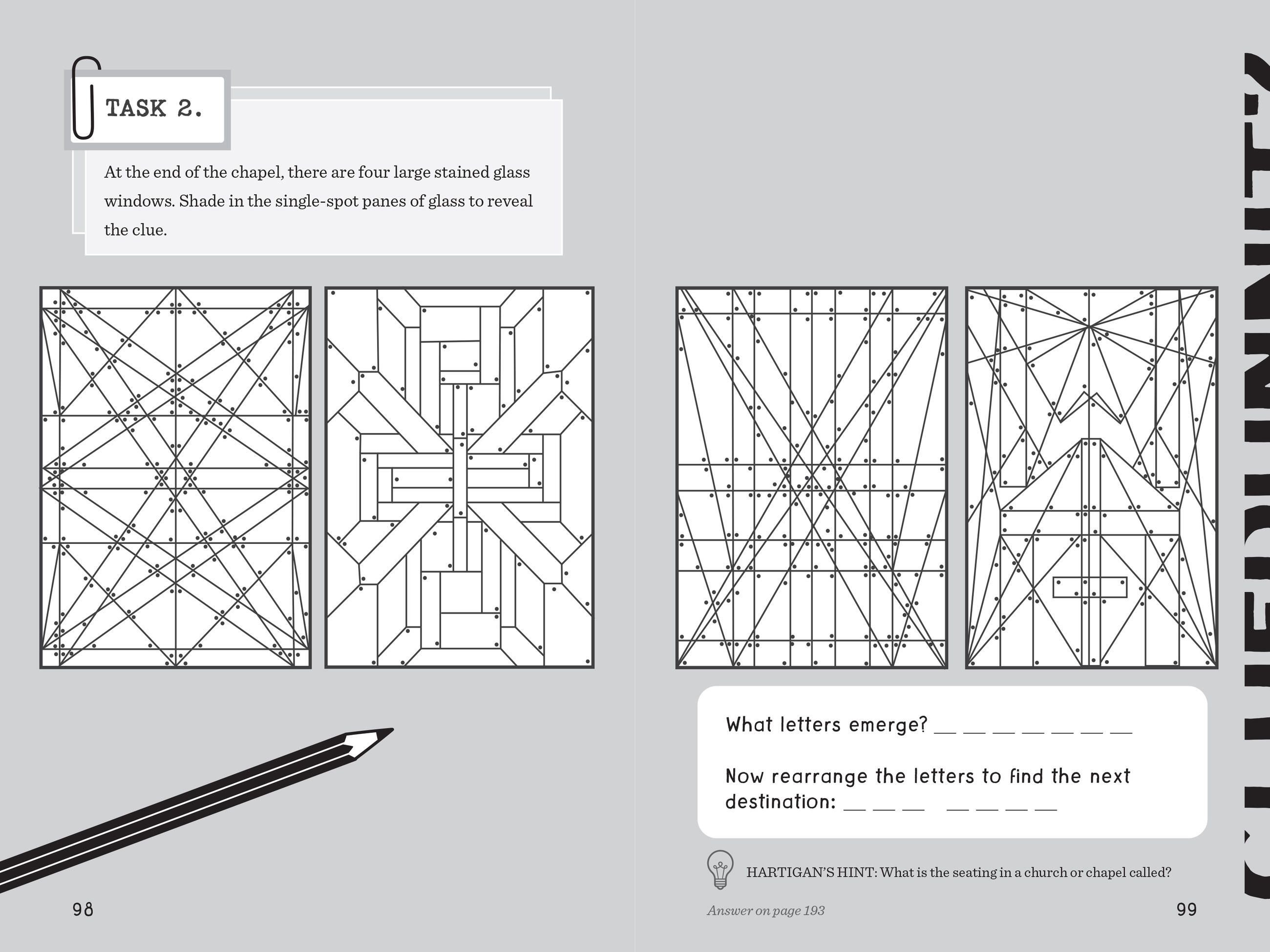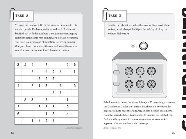 Packed full of codes to crack, evidence to evaluate, clues to unravel, and maps to navigate, Cluedle: The Case of the Grindstone Goblet is chockful of puzzling fun!