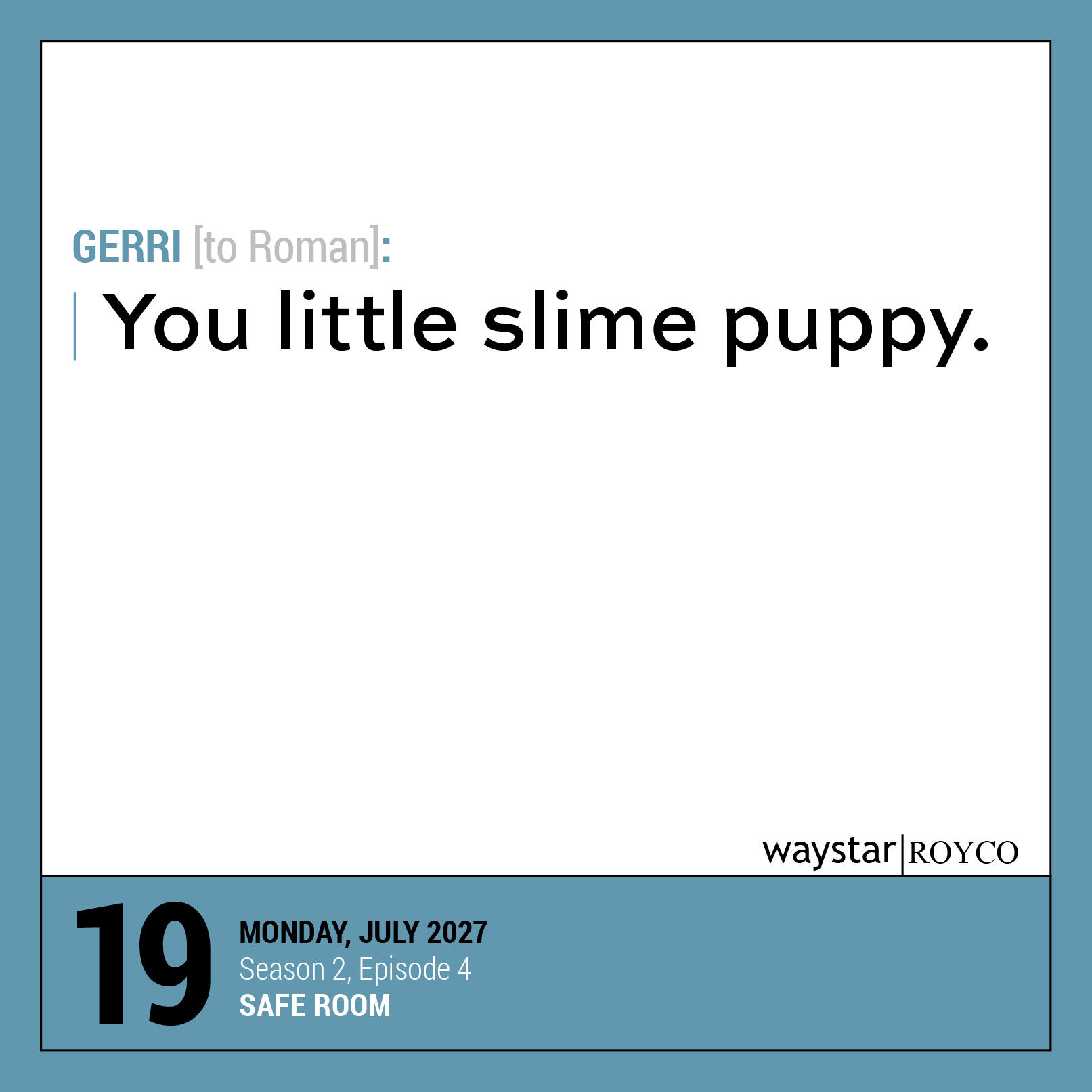 - A COLLECTION OF SUCCESSION‘S FUNNIEST, CRAZIEST, MOST OUTRAGEOUS QUOTES: Hostile takeovers, sibling rivalries, major deals, cutting call-outs, hilarious insults—all in a day’s work at Waystar RoyCo. Each day brings you another of the show’s best moments, from Kendall’s “L to the OG” rap to Tom’s thoughts on “ludicrously capacious” bags and more.