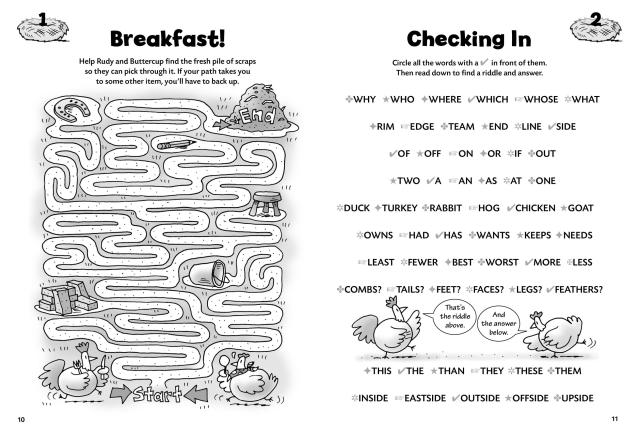 Peck your way through chicken wire mazes and crack some codes while collecting eggs. Kids 6 to 9 will delight in this romp through a barnyard full of brainteasers, word searches, tongue twisters, picture puzzles, and much more. Rudy and Buttercup, two chickens who know their way around the farm, lead you through this engaging and informative book of chicken-themed fun. Cluck and cackle as you solve one fowl riddle after another.