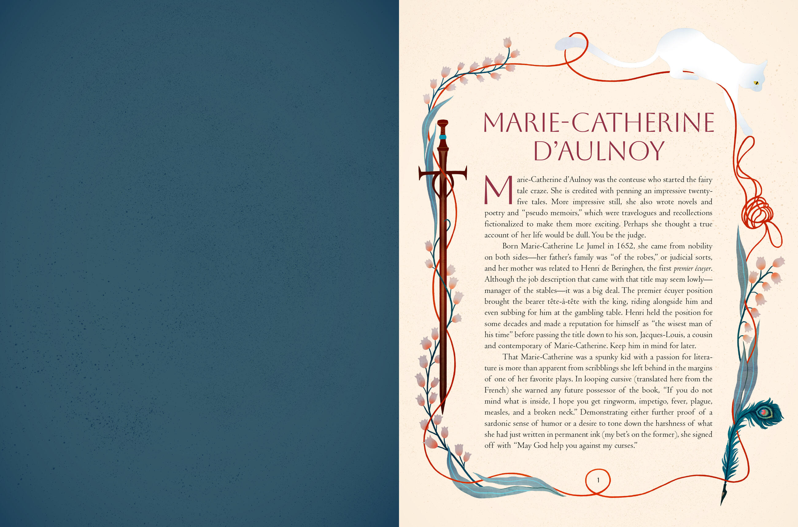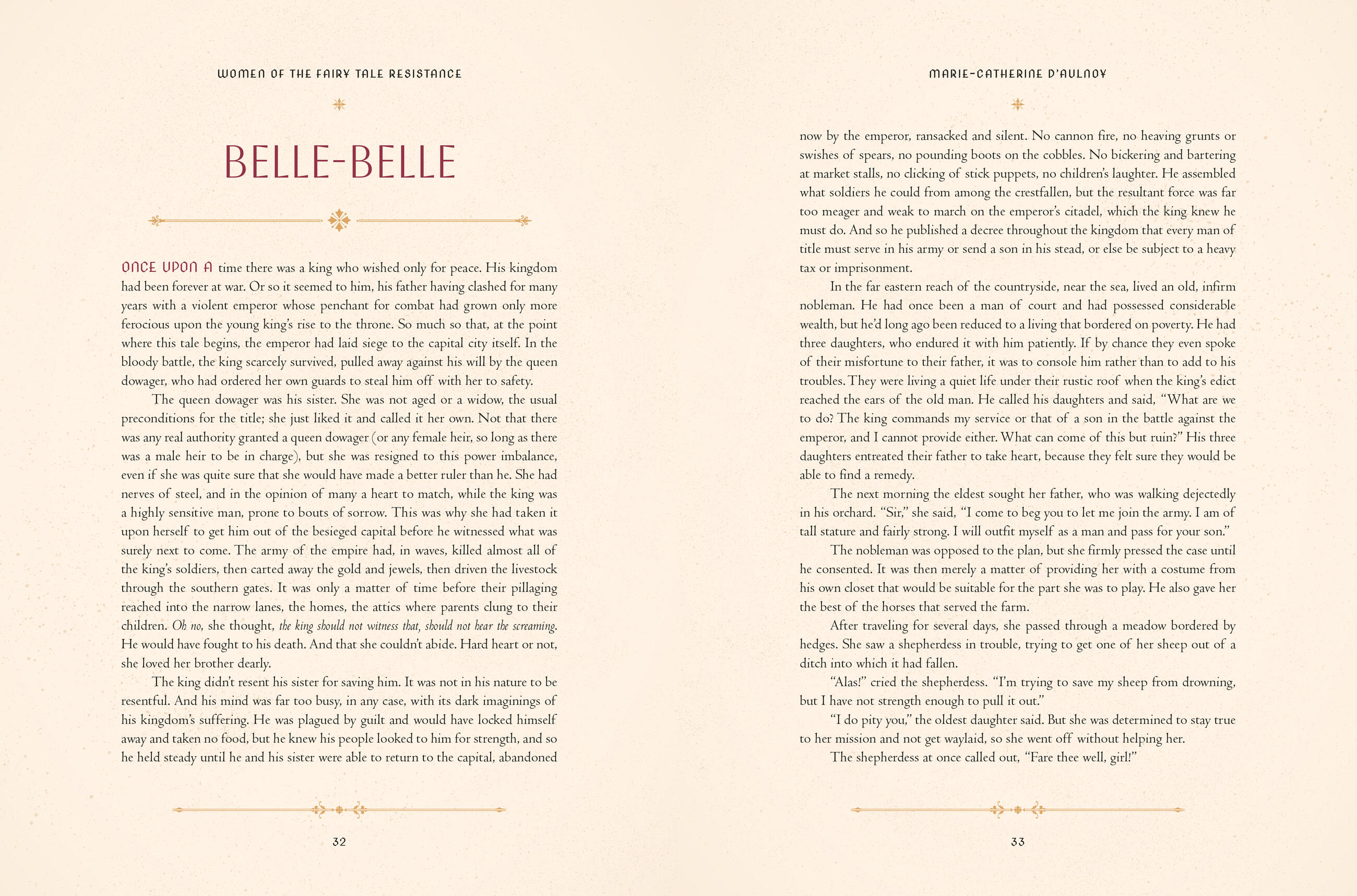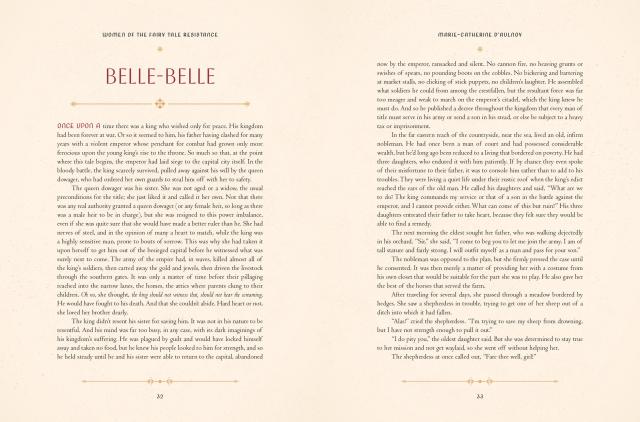 Women of the Fairytale Resistance uncovers seven of these writer’s biographies—which are just as compelling as their fairy tales—and retells 12 of their original stories. The women were mostly young noblewomen who were forced into undesirable marriages and did not have the freedom to give their opinions, travel, or choose who they wanted to love. They used their stories as a way of subtly complaining about their husbands and critiquing the oppressive reign of King Louis XIV. The female-empowering, gender-bending tales combine themes like romance, fantasy, escapism, and their protagonists control of their own destiny—something the writers deeply desired in their own lives.
