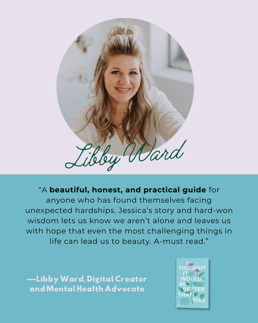 “A beautiful, honest, and practical guide for anyone who has found themselves facing unexpected hardships. Jessica’s story and hard-won wisdom lets us know we aren’t alone and leaves us with hope that even the most challenging things in life can lead us to beauty. A-must read.”Libby Ward, Digital Creator (@LibbyWard) and Mental Health Advocate