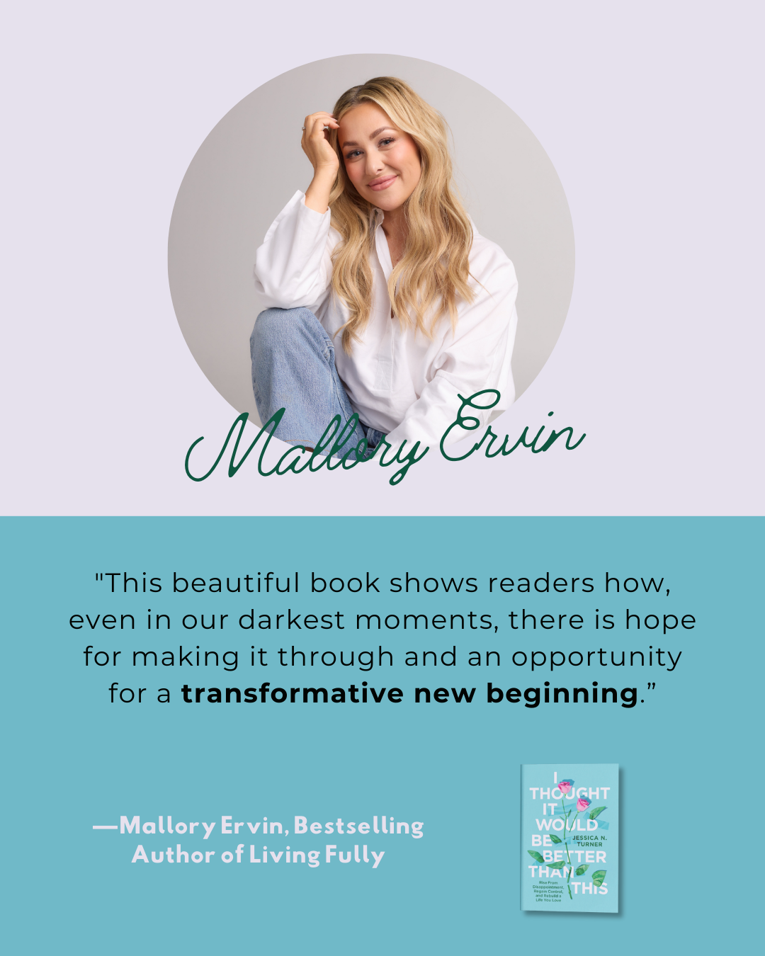 "This beautiful book shows readers how, even in our darkest moments, there is hope for making it through and an opportunity for a transformative new beginning. I’ve seen firsthand how my friend Jessica lives with grace and resilience. Her journey is a reminder that we can reclaim our story and rediscover the beauty of our lives. I strongly recommend this book to anyone who is ready to create beauty from the ashes and begin living their fullest lives."Mallory Ervin, Bestselling Author of Living Fully