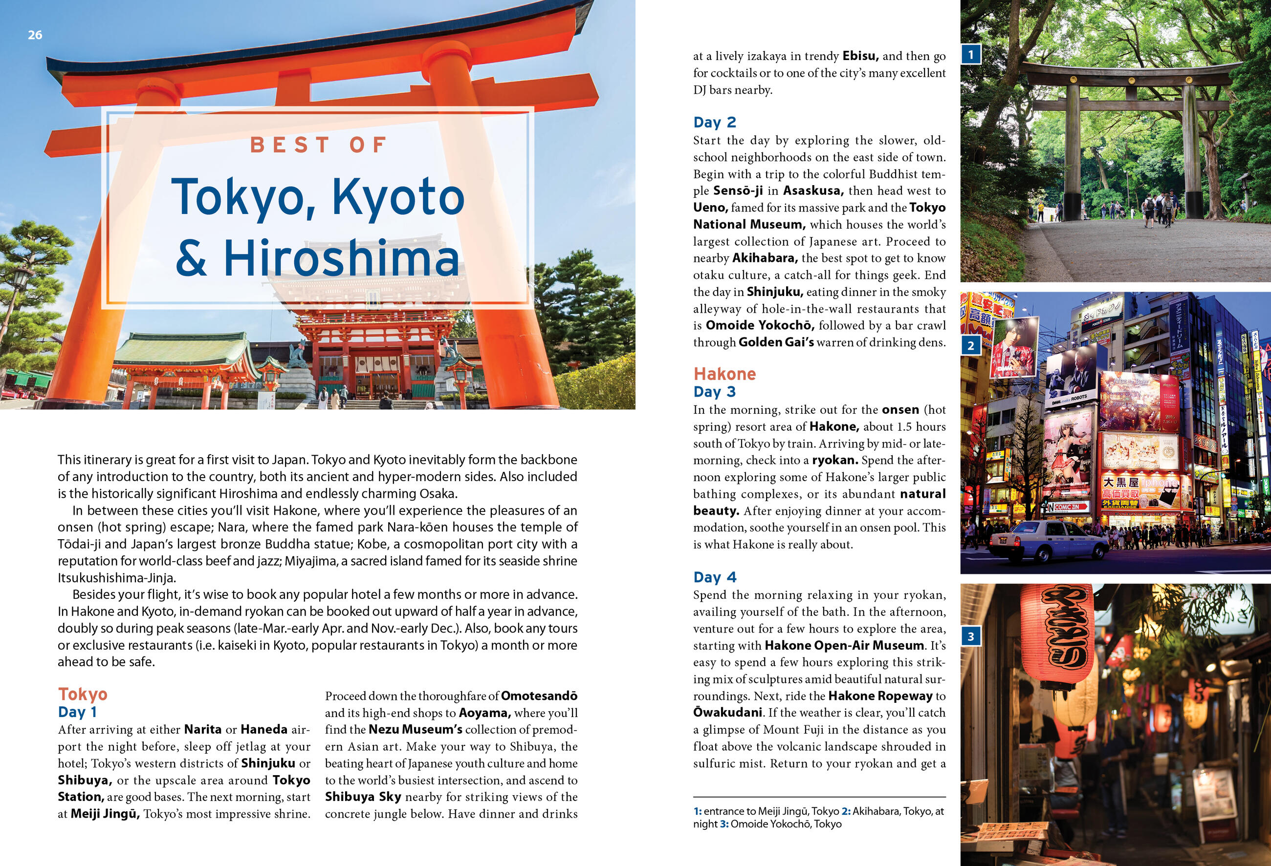 - Flexible itineraries for 1 to 5 days in Tokyo, Kyoto and Hiroshima that can be combined into a longer trip