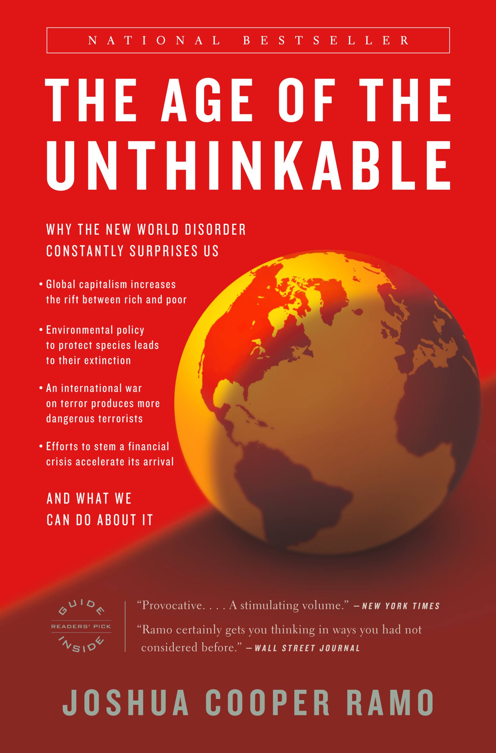 In The Age of the Unthinkable, Joshua Cooper Ramo puts forth a revelatory new model for understanding our dangerously unpredictable world. Drawing upon history, economics, complexity theory, psychology, immunology, and the science of networks, he describes a new landscape of inherent unpredictability — and remarkable, wonderful possibility.