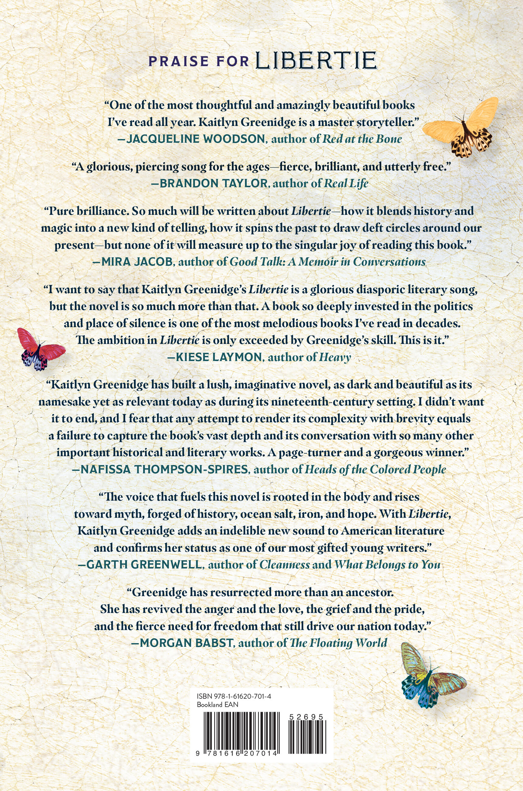 âIn this singular novel, Kaitlyn Greenidge confronts the anonymizing forces of history with her formidable gifts. Libertie is a glorious, piercing song for the agesâfierce, brilliant, and utterly free.â