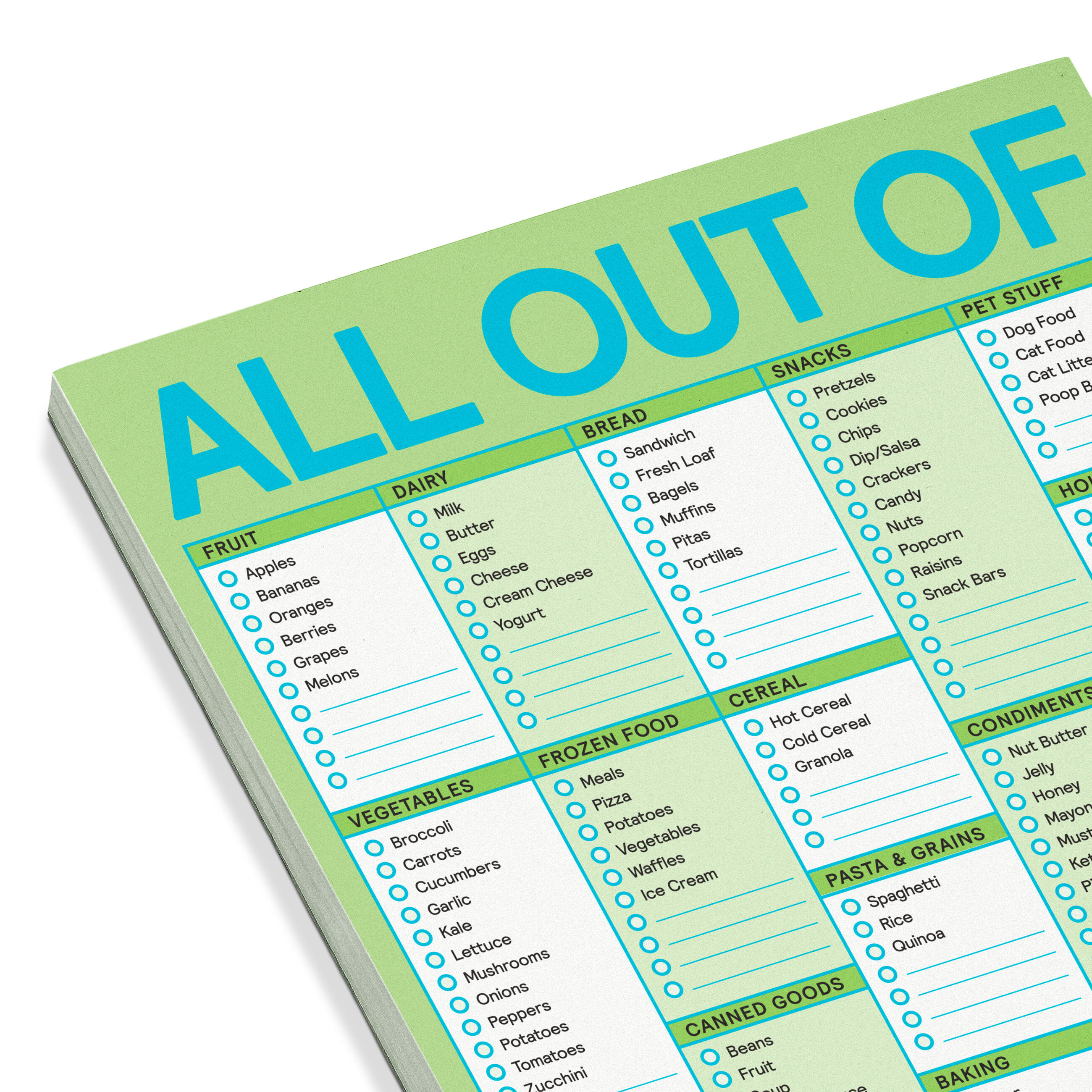 Who hasn’t wandered blindly at the grocery store, trying to remember what to buy? Now available in a yummy pastel-y lime green, this perennial favorite lets you check off depleted items as you run out, then replenish with ease and certainty when next you shop.