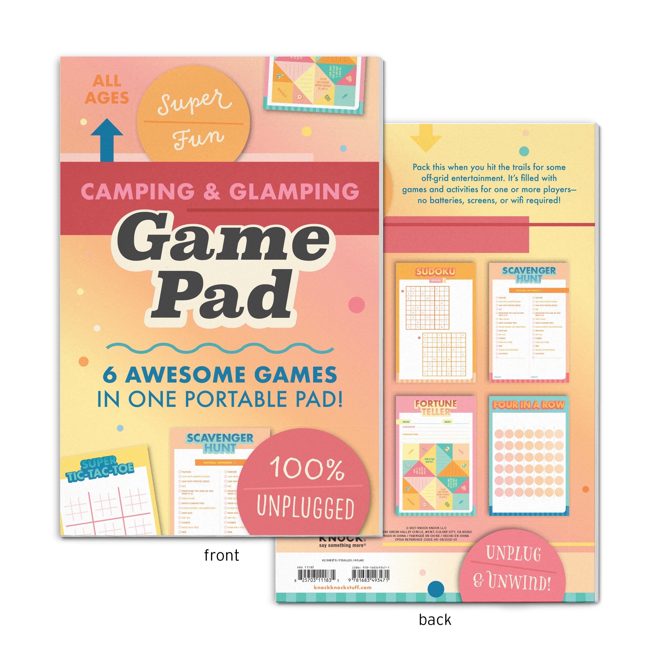 Pack this family fun pad when you hit the trails for some off-grid entertainment! It’s filled with games and activities for one or more players – no batteries, screens, or wifi required!