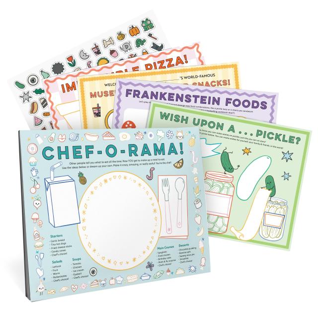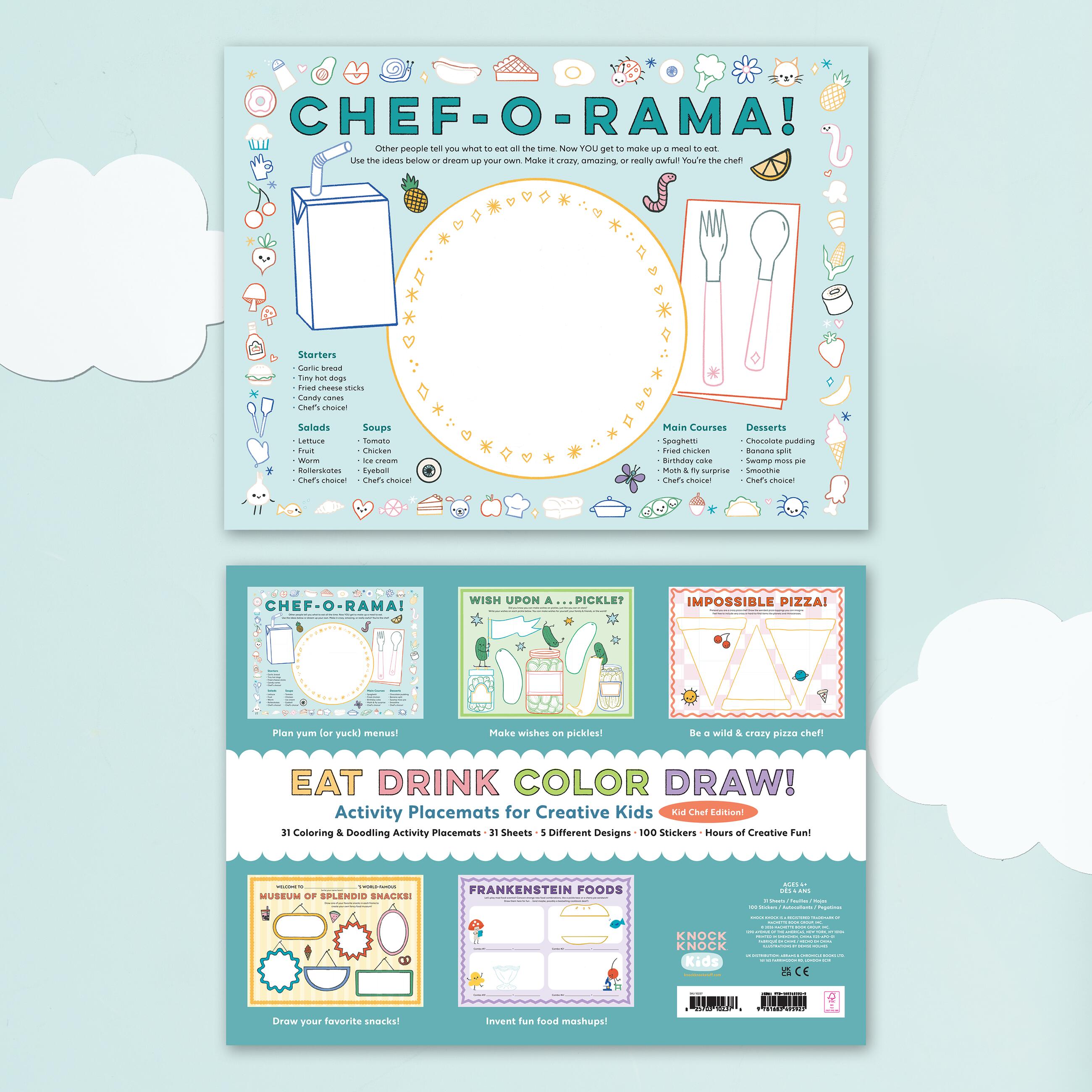 Featuring five rotating activity sheets that encourage kids to draw, color, imagine, and play—all with a deliciously fun twist on food and creativity!