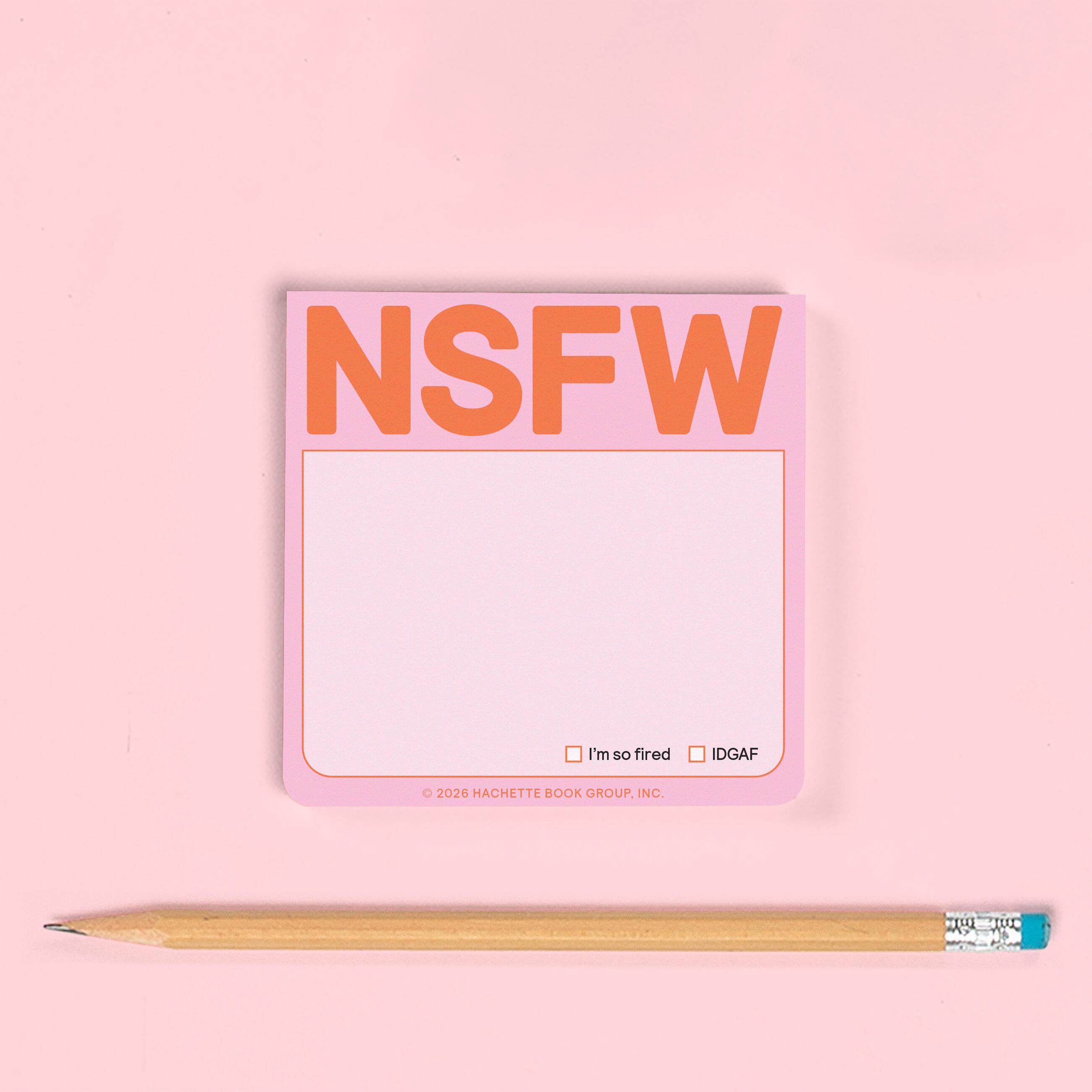 The NSFW (aka Not Safe for Work) sticky note gives a wink and a nod to popular slang and adds a cheeky element to everyday office supplies and paper goods.