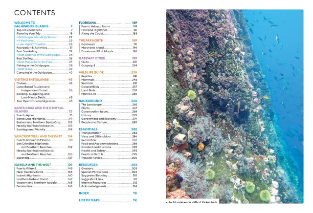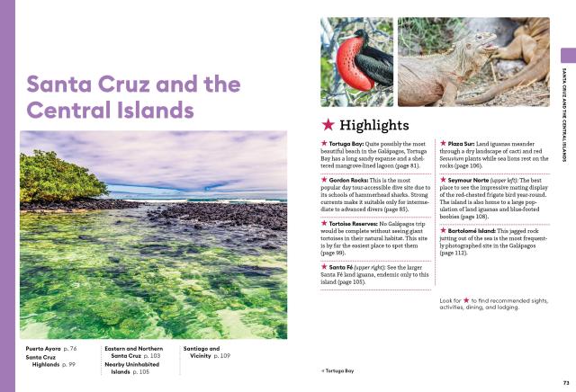 - In-depth coverage of Santa Cruz, San Cristóbal, Isabela, Floreana, and the remote uninhabited islands of Santiago, Fernandina, Española, and Genovesa, plus the gateway cities of Quito and Guayaquil