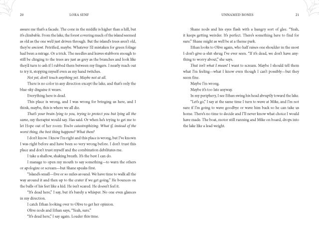 Unnamed Bones is an unrelenting nightmare that will mess with your head as much as it messes with Harrow and her friends (or frenemies...). I was legit freaked out at times (I hereby promise to never explore any creepy islands), but I couldn't stop turning the pages.Paul Tremblay, New York Times bestselling author of Another and Horror Movie