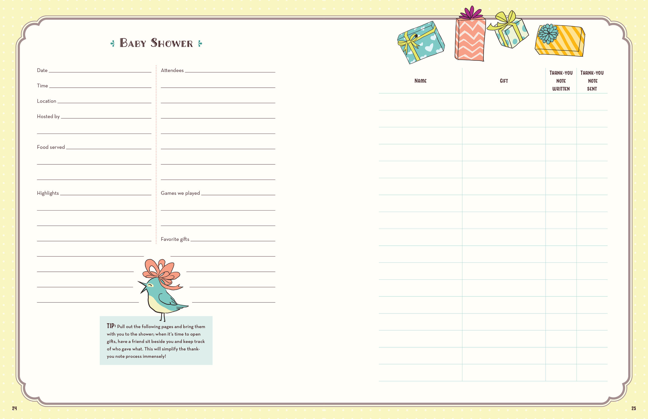 Packed with expert advice; feeding and sleep schedules; checklists and charts; and prompts for filling in medical information, milestones, and unforgettable moments—from feeling that first kick to your toddler’s most hilarious conversations—it’s both a super-practical organizer and a memento to keep forever.