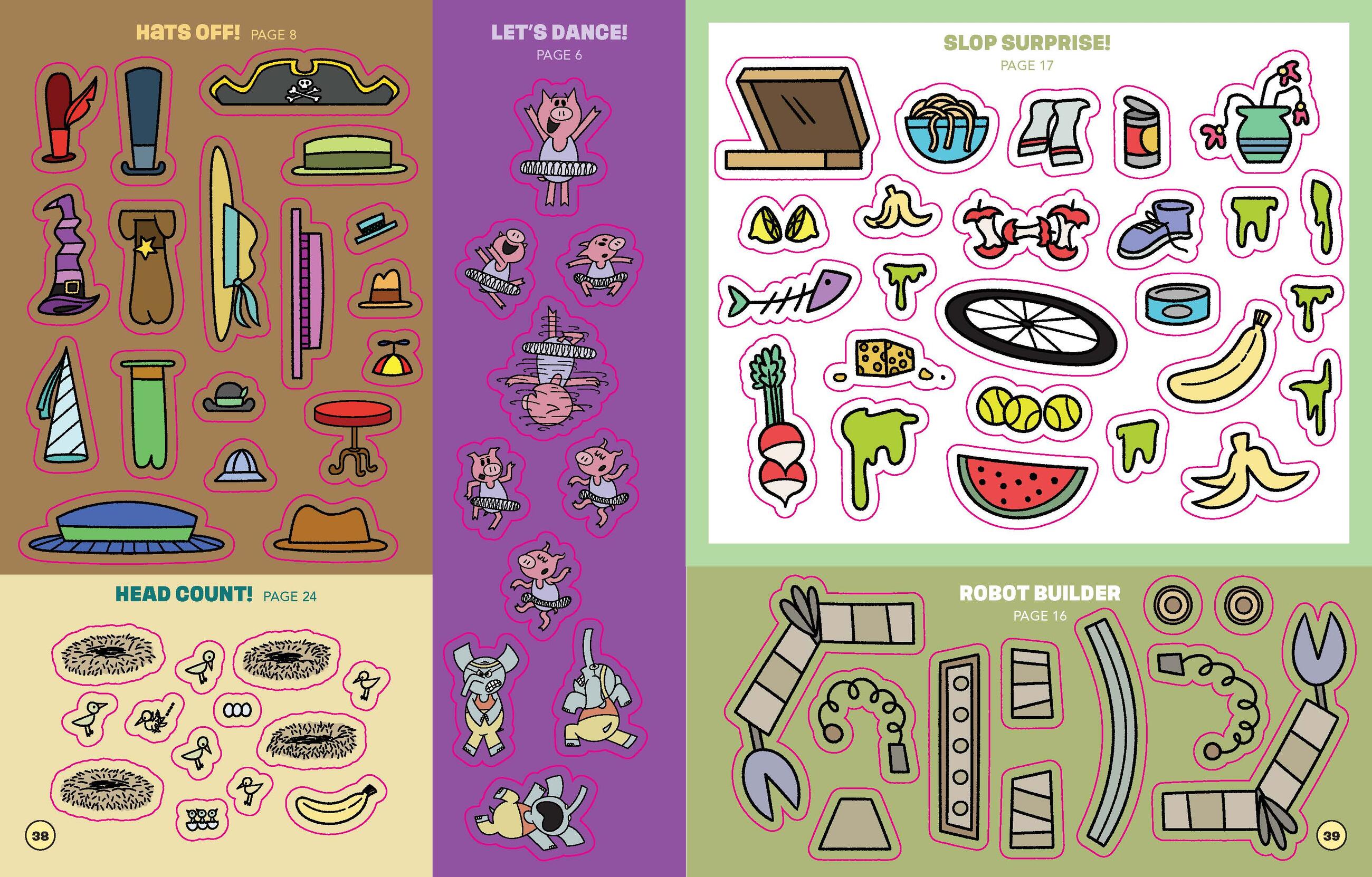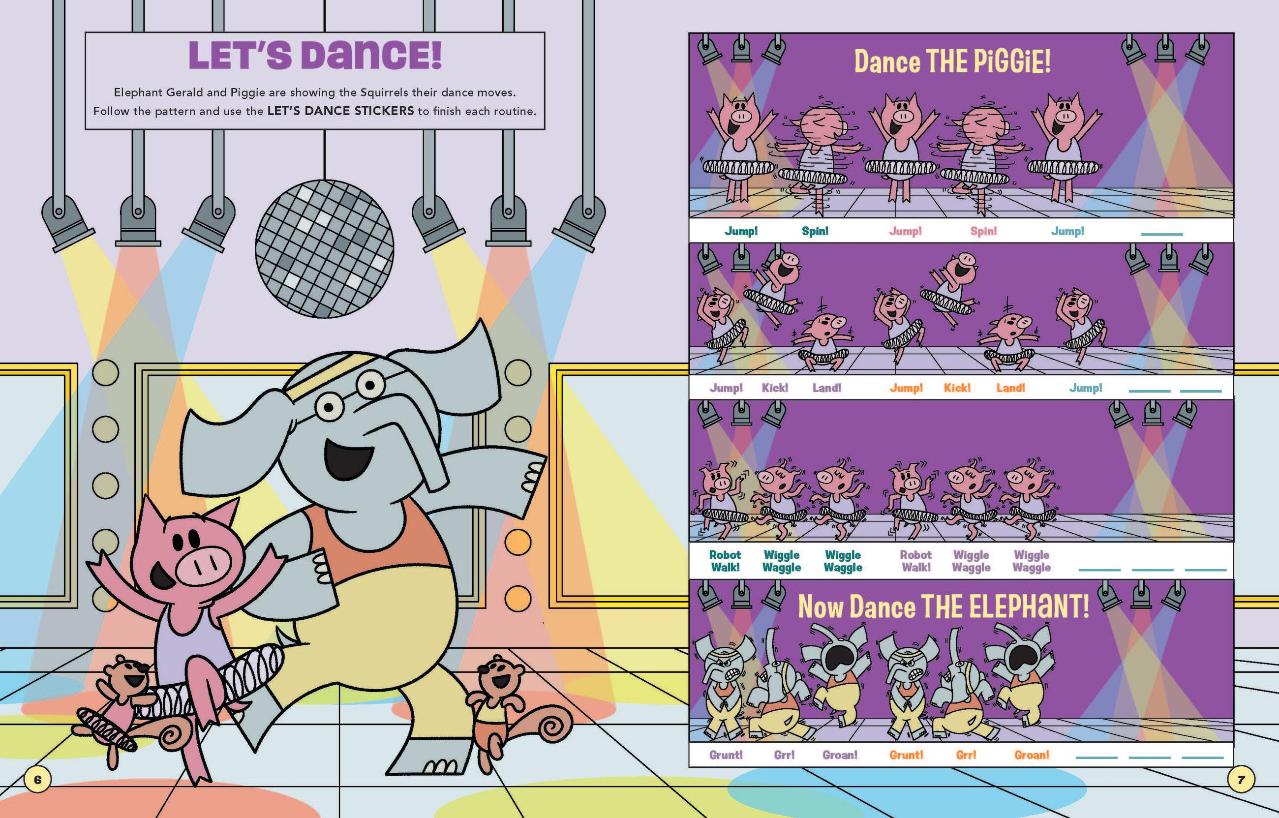 Elephant and Piggie stick together like only best friends can! This fun-filled sticker-scene book features favorite Elephant & Piggie adventures along with special guest appearances from a cast of pals including Snake, Bat, Whale, and Ice Cream Penguin. Dance with Gerald, play ball with Snake, make slop with Piggie, go for a drivey-drive-drive, and so much more!