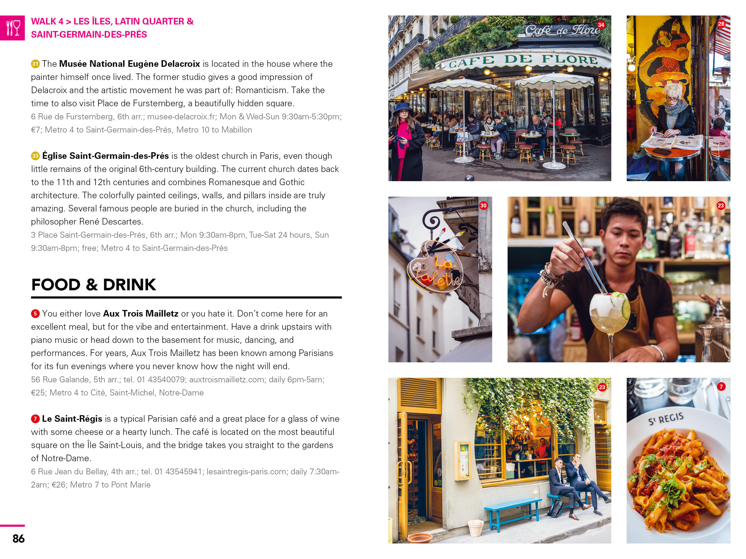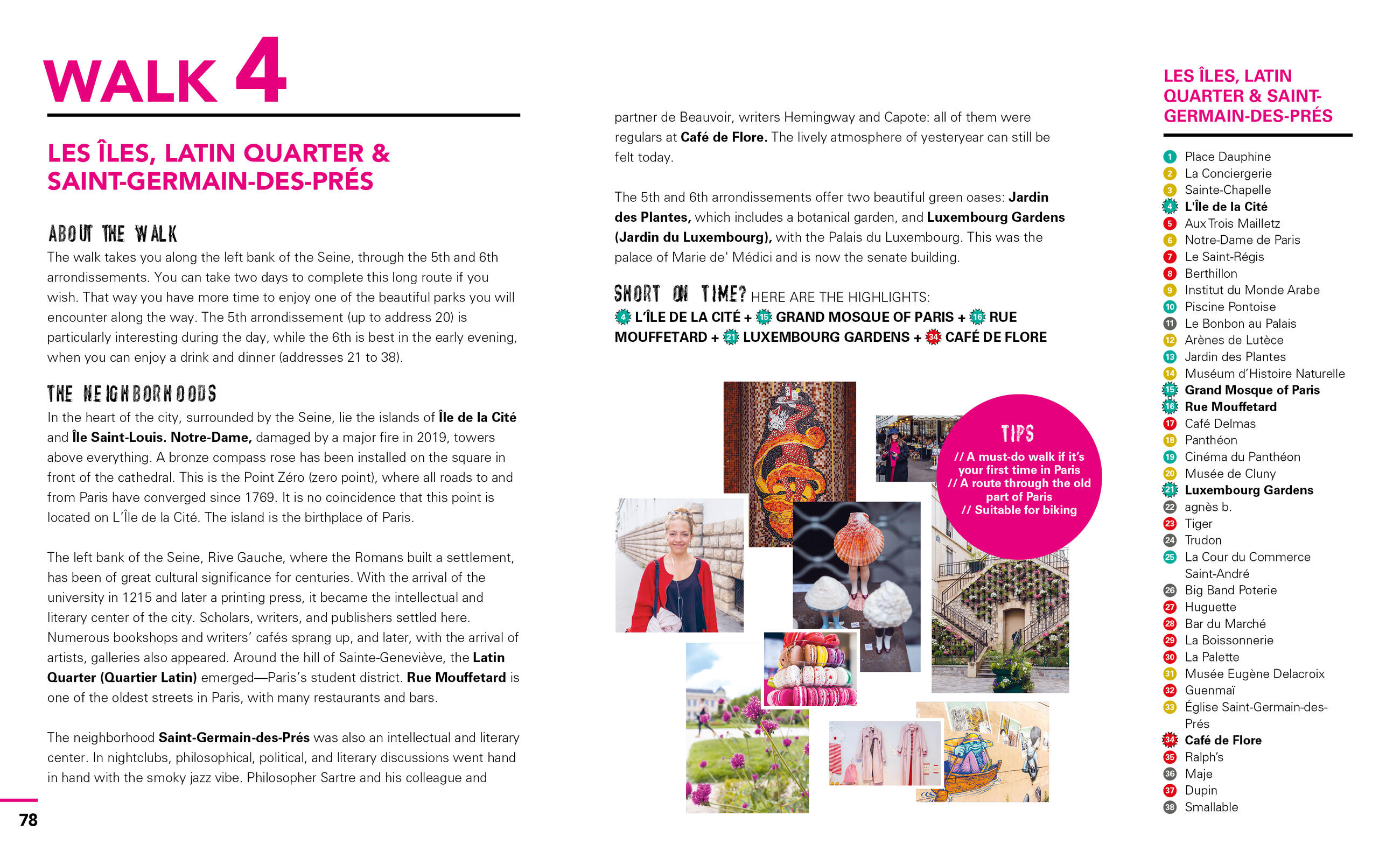 - Walk through the city’s coolest neighborhoods like Montmartre, Le Marais, Saint-Germain-des-Prés, and more, with color-coded stops and turn-by-turn directions