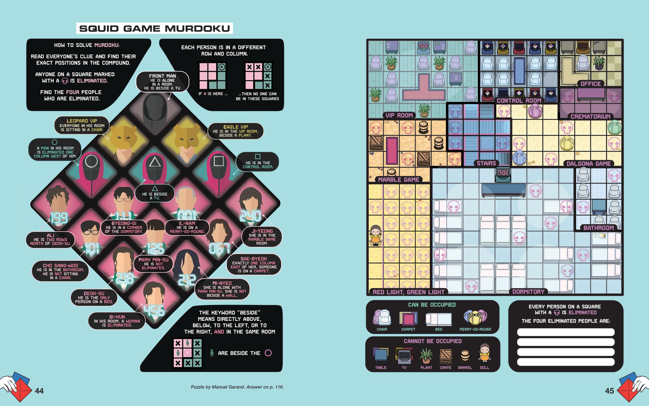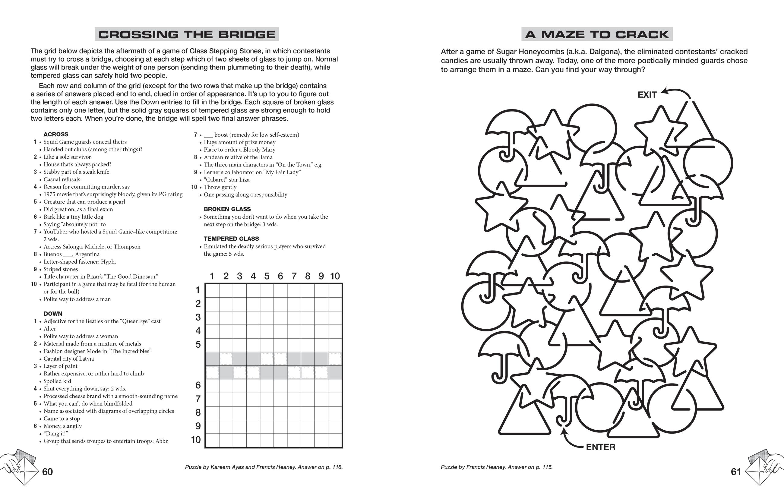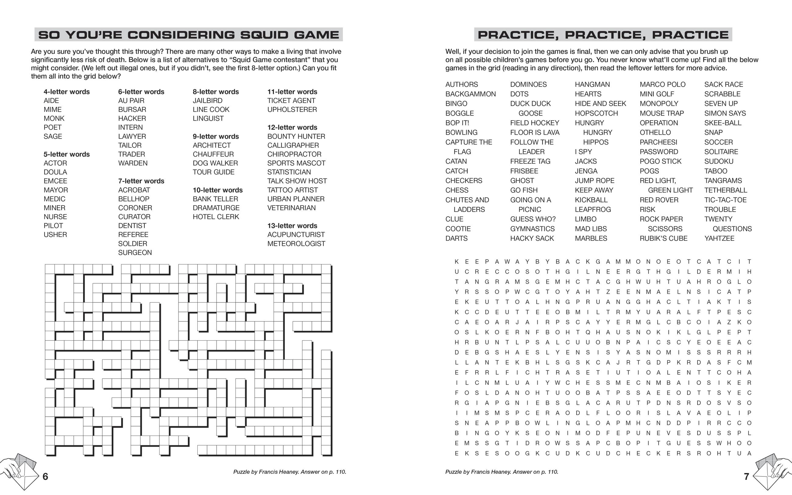 This massive puzzle collection is perfect for anyone who wants all the challenge and intellectual stimulation of participating in Squid Game without the risk of an ignominious death. Enjoy crosswords, word searches, sudoku variants, word logic puzzles, photo puzzles, and more, all inspired by your favorite games from Squid Game and Squid Game: The Challenge like Red Light Green Light, Tug of War, Glass Bridge, Sugar Honeycombs, Marbles, and more.
