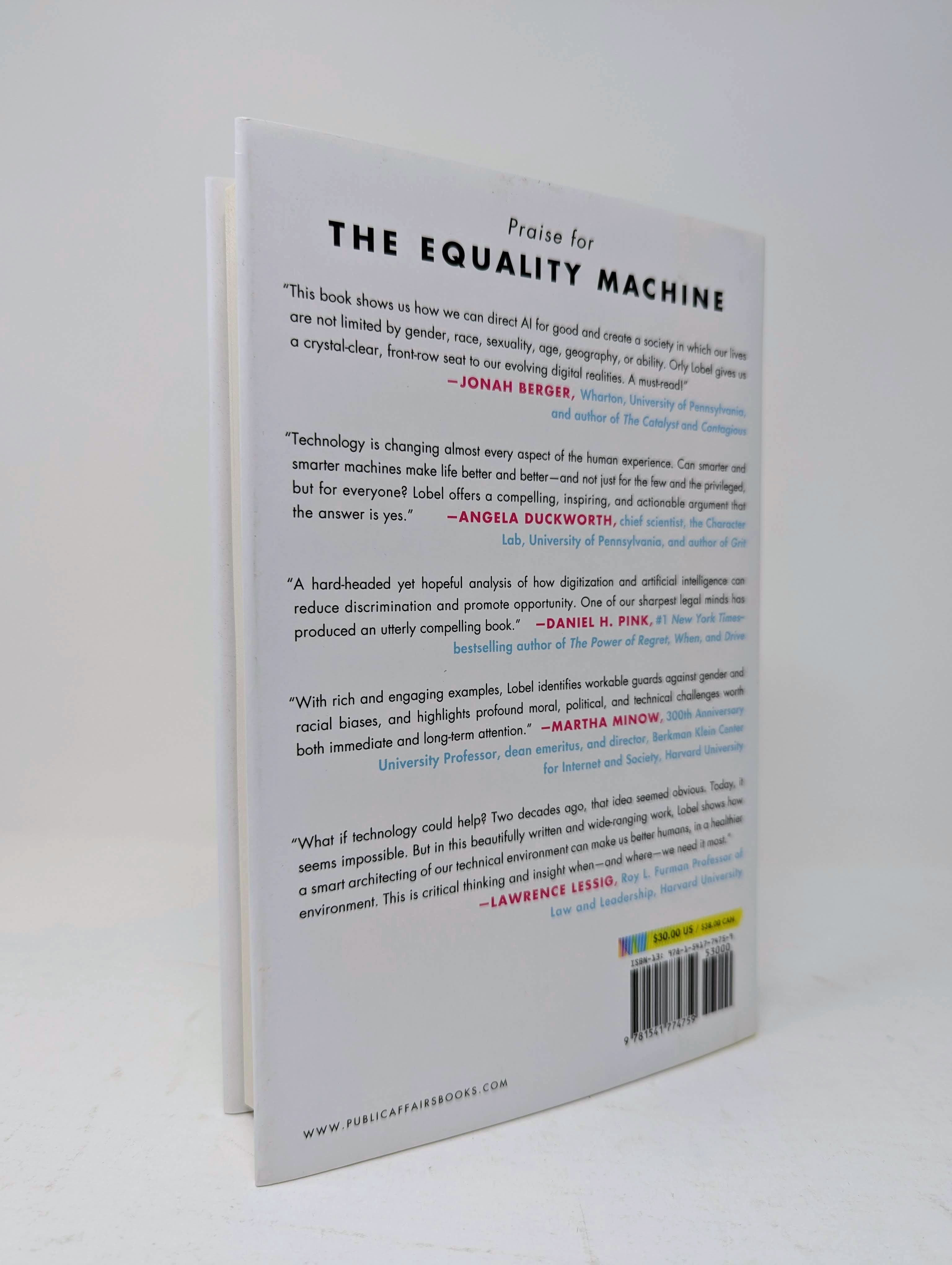 “With great computing power comes great responsibility. The Equality Machine shows how we can direct AI for good and create a society in which our lives are not limited by gender, race, sexuality, age, geography, or ability. As always, Orly Lobel gives us a crystal-clear, front-row seat to our evolving digital realities. A must-read!”Jonah Berger, Wharton School, University of Pennsylvania, and author of The Catalyst and Contagious