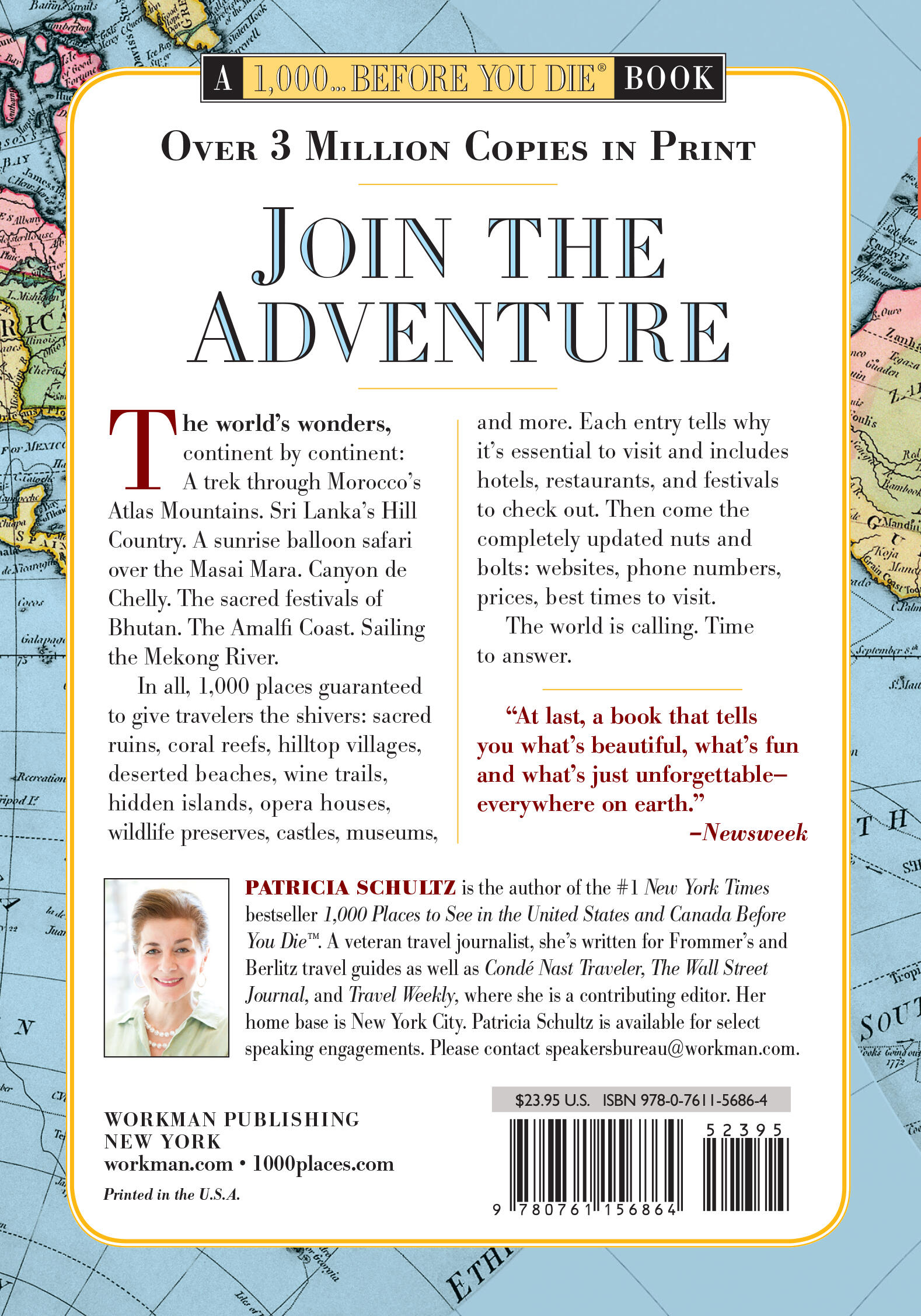 “The names of authors who have sold millions of travel guidebooks are widely known: Fodor. Frommer. Steves. Oh, and don't forget Schultz. You know, Patricia Schultz. Still not familiar? Her signature title surely is: ‘1,000 Places to See Before You Die.’ [She is] the travel expert who launched legions of bucket lists back in 2003 (before we even knew what a bucket list was).”
