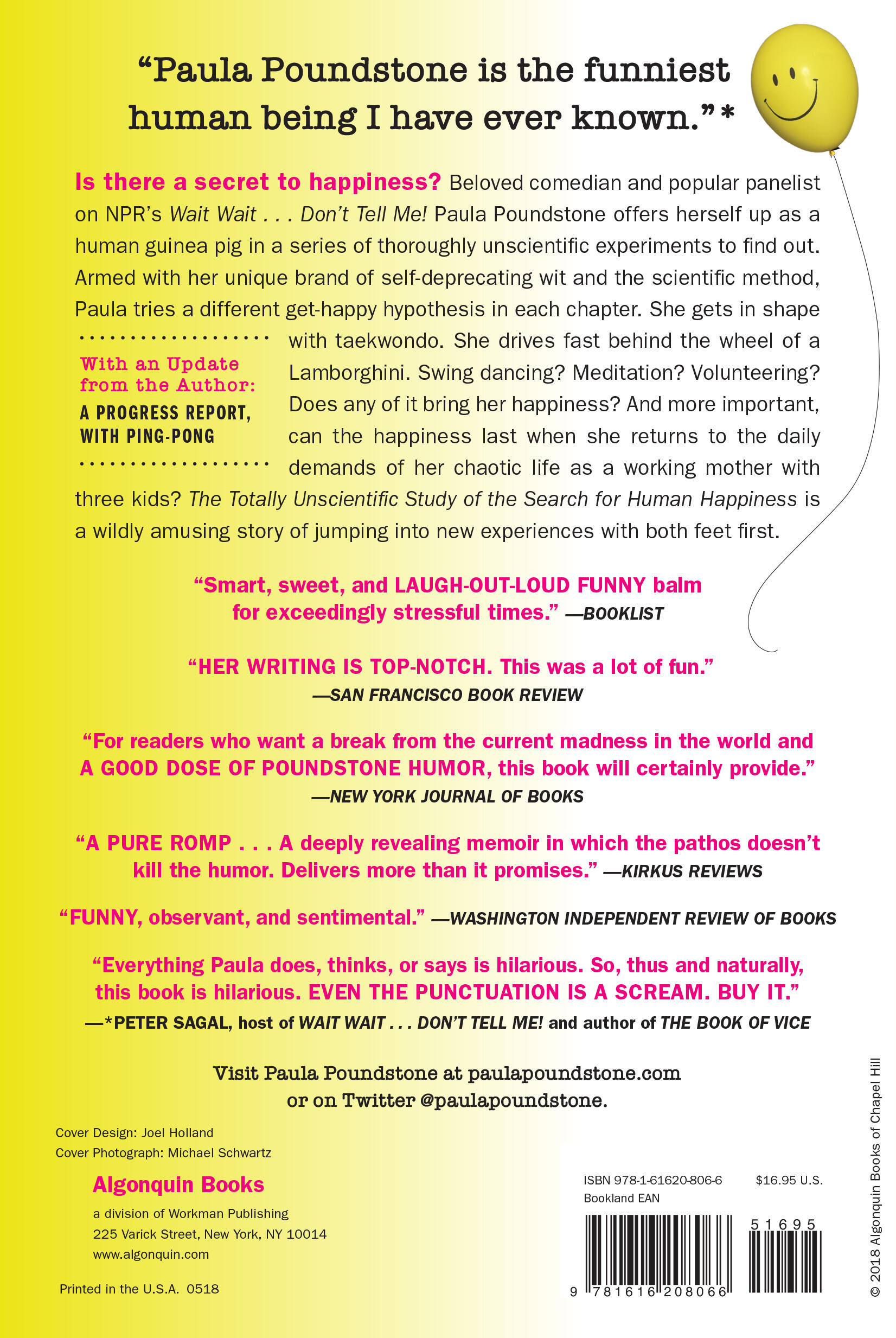 Like George Carlin, Steve Martin, and David Sedaris, she is a master of her craft, and her comedic brilliance is served up in abundance in this book. As author and humorist Roy Blount Jr. notes, “Paula Poundstone deserves to be happy. Nobody deserves to be this funny.”