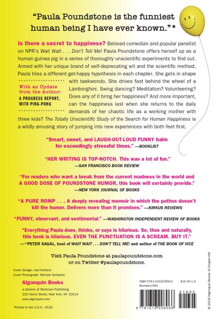 “Reading Paula Poundstone’s The Totally Unscientific Study of the Search for Human Happiness, I laughed until I got fit, wired, earthy, organized, you-name-it. I’m happy now. I’ve discovered that the secret to happiness is to let Paula do all these things while I read her hilarious book about it.”