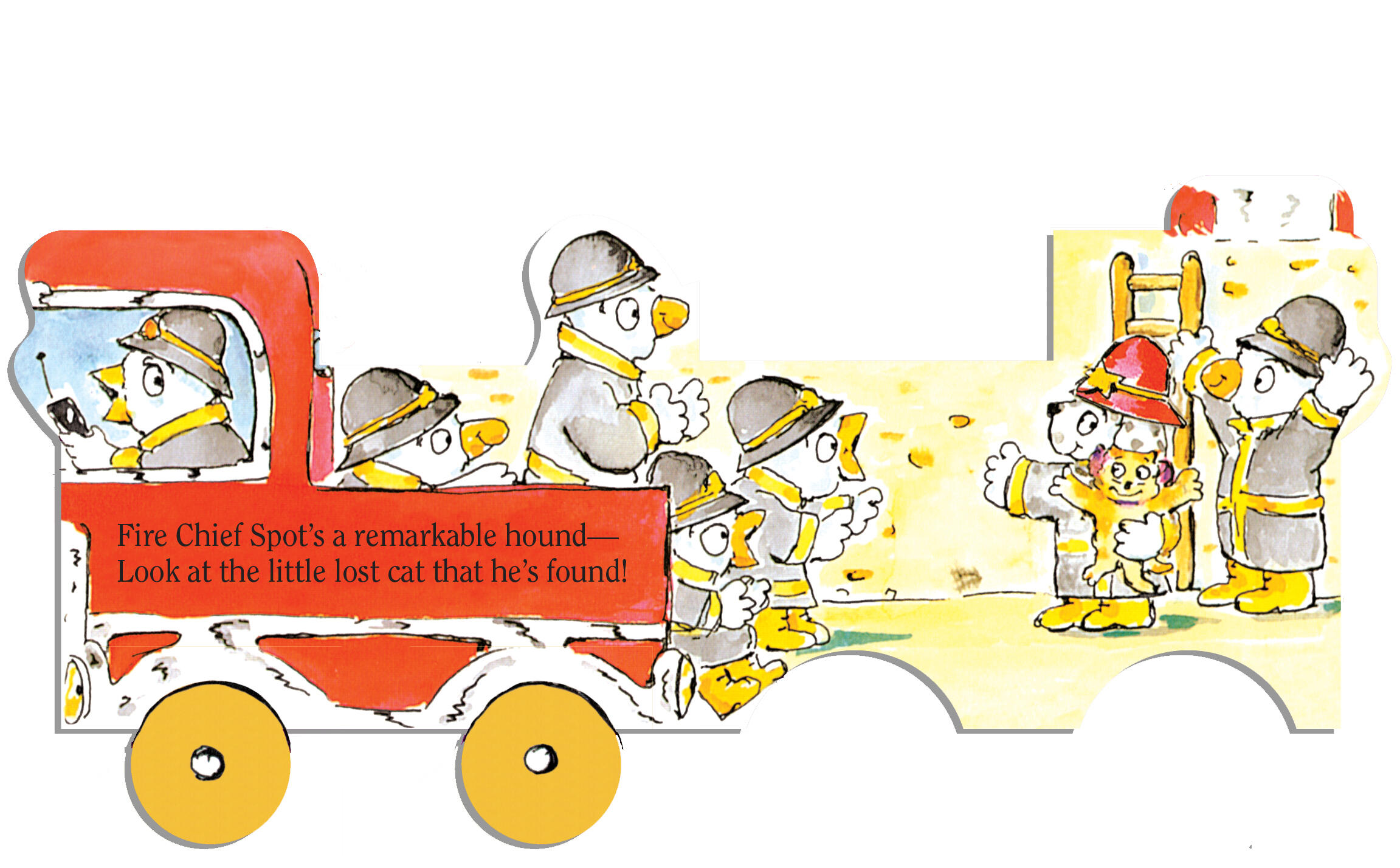 Welcome aboard the Mini Fire Truck, where you can name all its fascinating paraphernalia, work with the equipment, and rush off to fight a fire, where the firehouse dog makes a heroic save. This story book is fun to read…and because it’s die-cut in the shape of a truck, it’s also fun to play with!