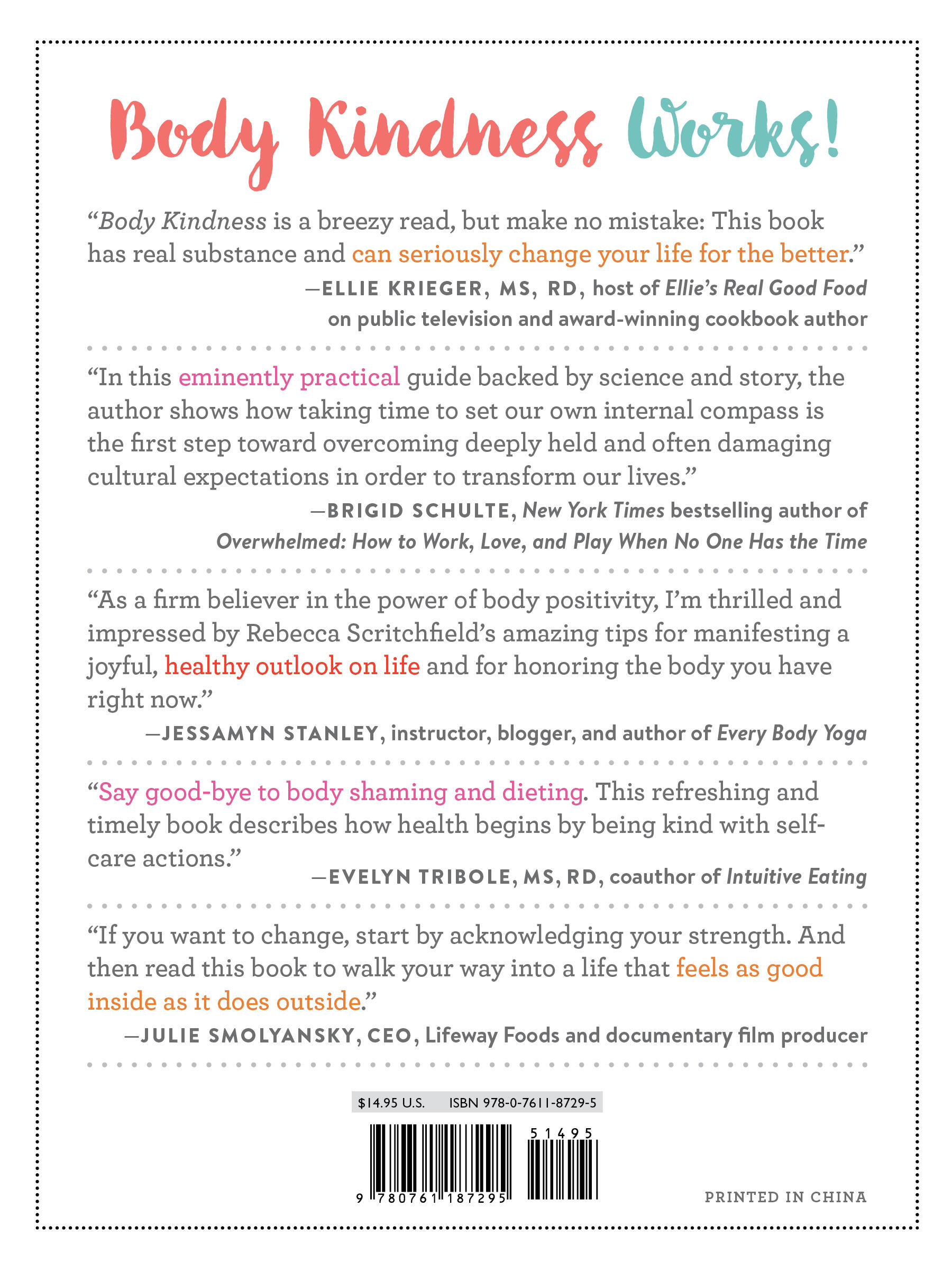 “What a pleasure to read such a sensible, self-loving book about improving one’s health. Rebecca Scritchfield’s Body Kindness method honors body diversity—for real! She’s not scamming her readers with bogus weight-loss promises. Her weight-neutral, compassionate, and practical approach to health allows people to make joyful, long-lasting changes in their self-care practices.”