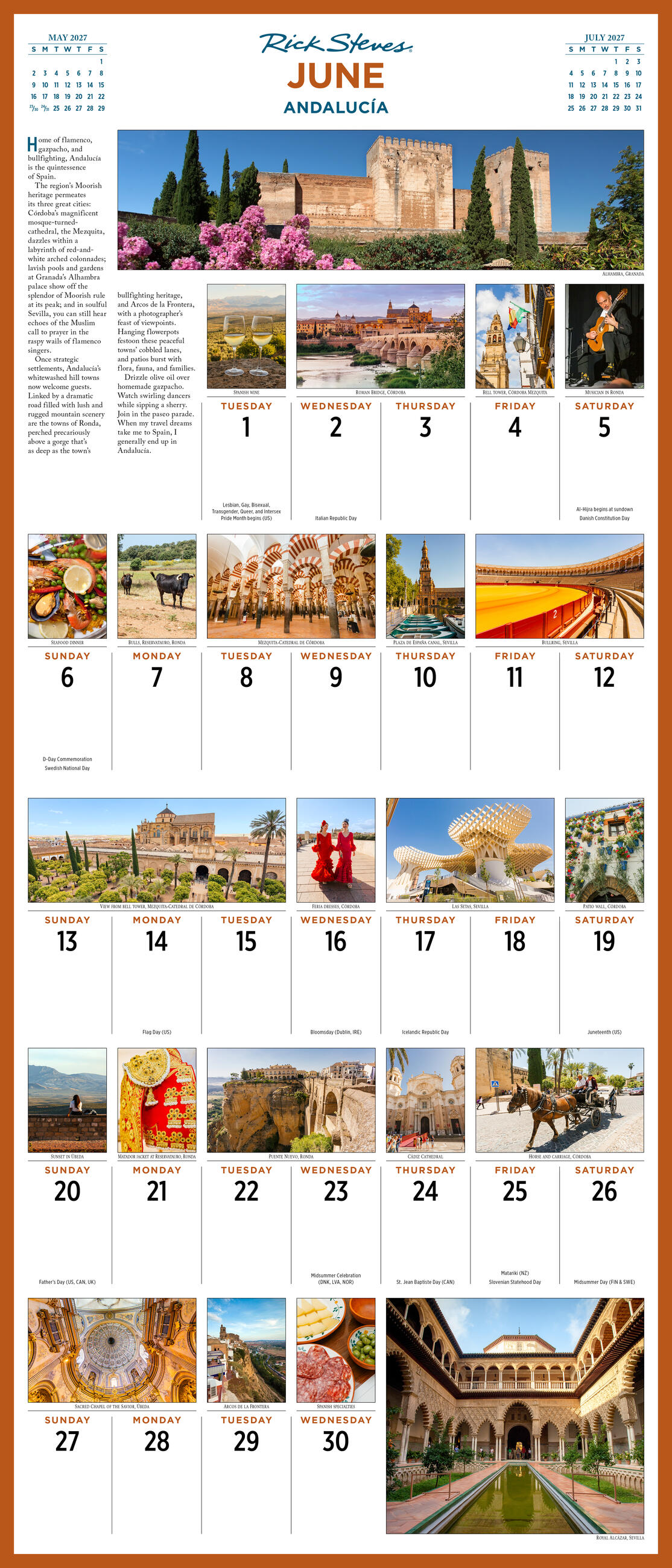 - MUST-SEE SIGHTS: Spend a year abroad across Europe’s iconic destinations. Each month features a different country with information and photos for nearly every day.