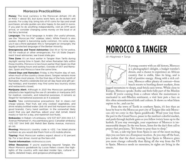 - Coverage of Barcelona, Basque Country, Bilbao, Santiago de Compostela, León, Salamanca, Madrid, El Escorial, the Valley of the Fallen, Segovia, Toledo, Granada, Sevilla, Córdoba, Andalucía, Spain’s Southern Coast, Gibraltar, Morocco, and more