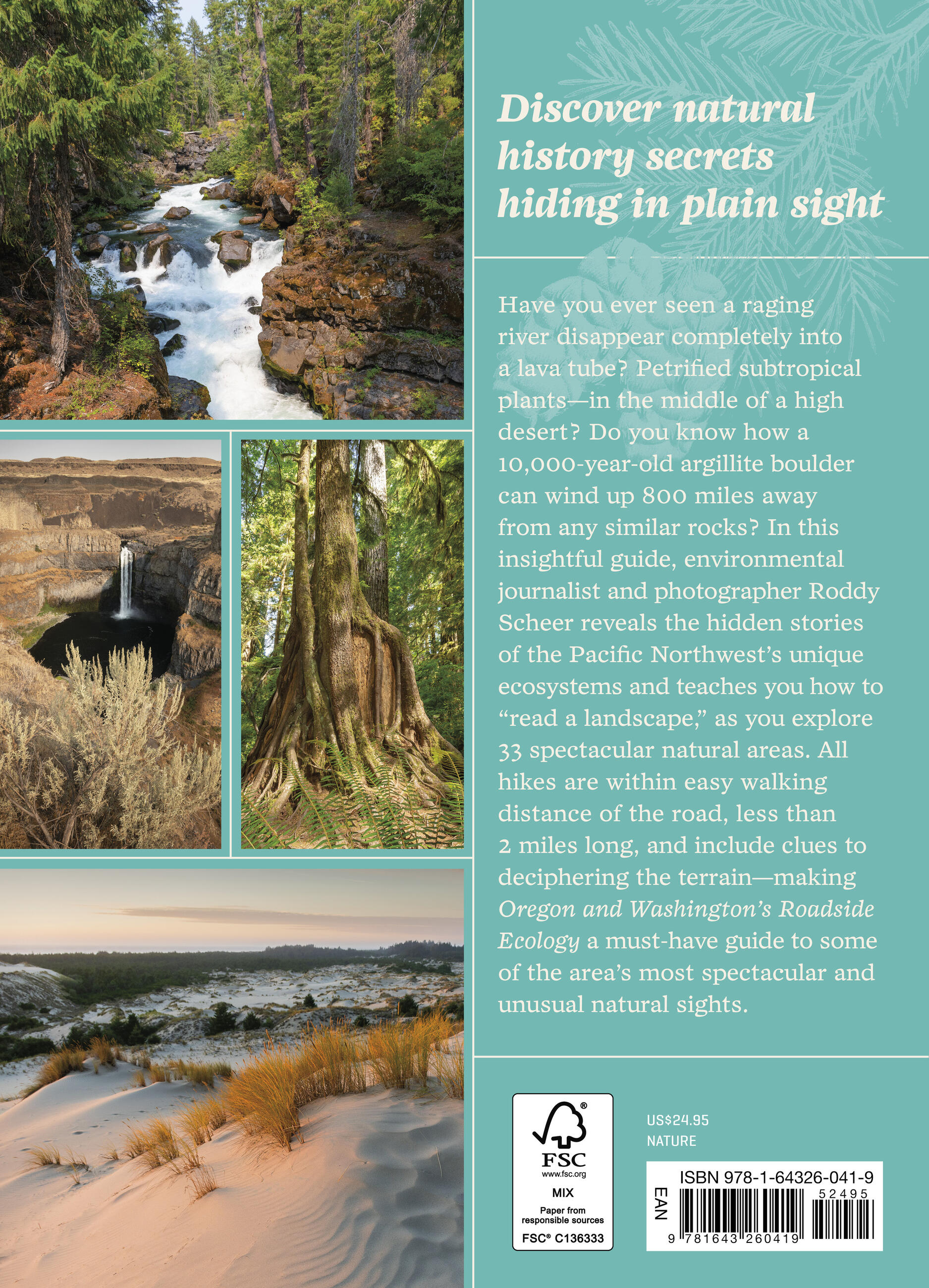 Have you ever seen a raging river disappear completely into a lava tube? Petrified subtropical plants in the middle of a high desert? Do you know how a 10,000-year-old argillite boulder can wind up 800 miles away from any similar rocks? In this insightful guide, environmental journalist and photographer Roddy Scheer reveals the hidden stories of the Pacific Northwest’s unique ecosystems and teaches you how to “read a landscape,” as you explore 33 spectacular natural areas. All hikes are within easy walking distance of the road, less than two miles long, and include clues to deciphering the terrain—making Oregon and Washington’s Roadside Ecology a must-have guide to some of the area’s most spectacular and unusual natural sights.