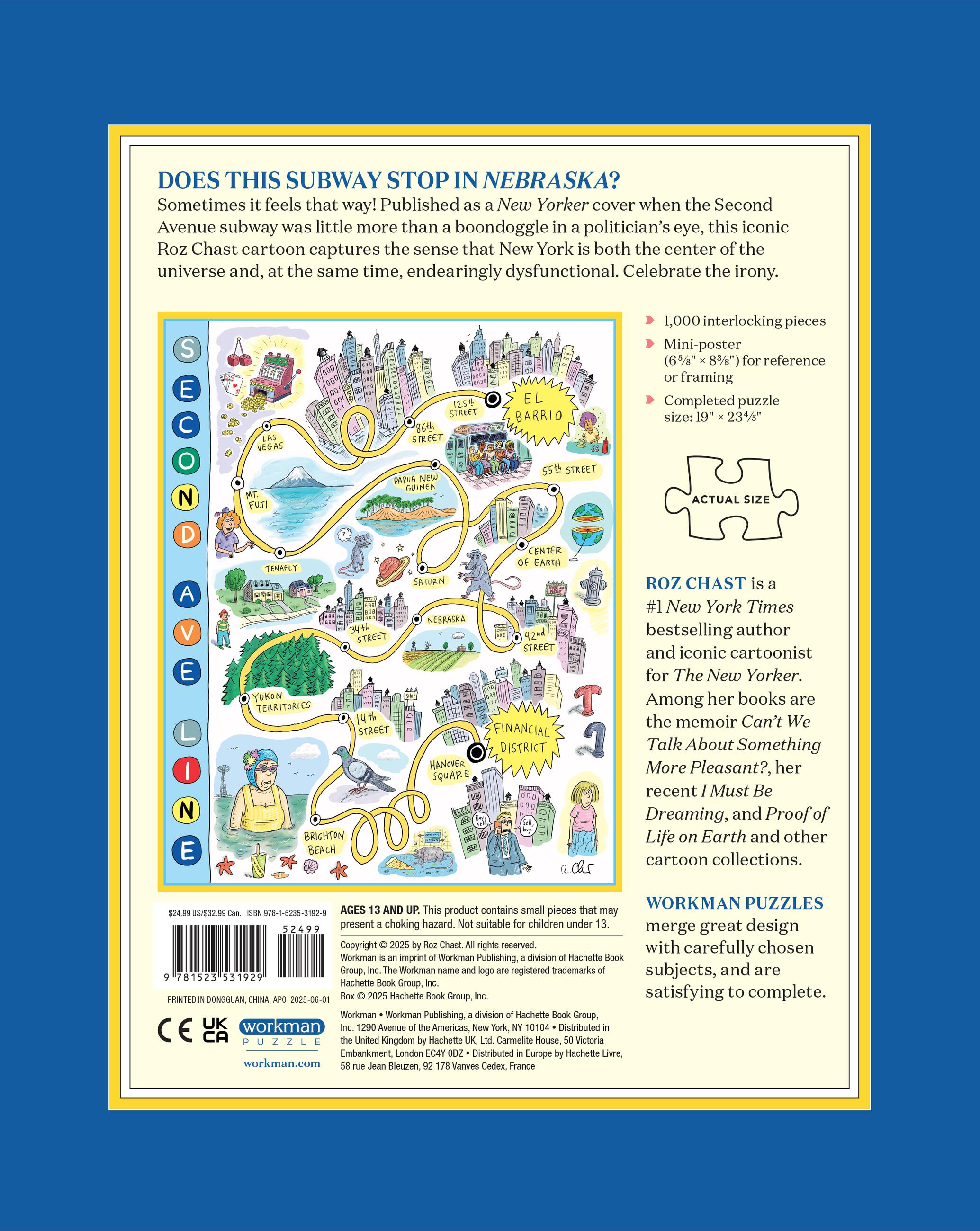 Roz Chast is a New Yorker cartoonist who has been making readers laugh for decades. Her Second Avenue Line puzzle is a hilarious and clever ode to New York City and its famous subway, making it a perfect gift for puzzlers, Chast fans, and NYC-lovers alike.