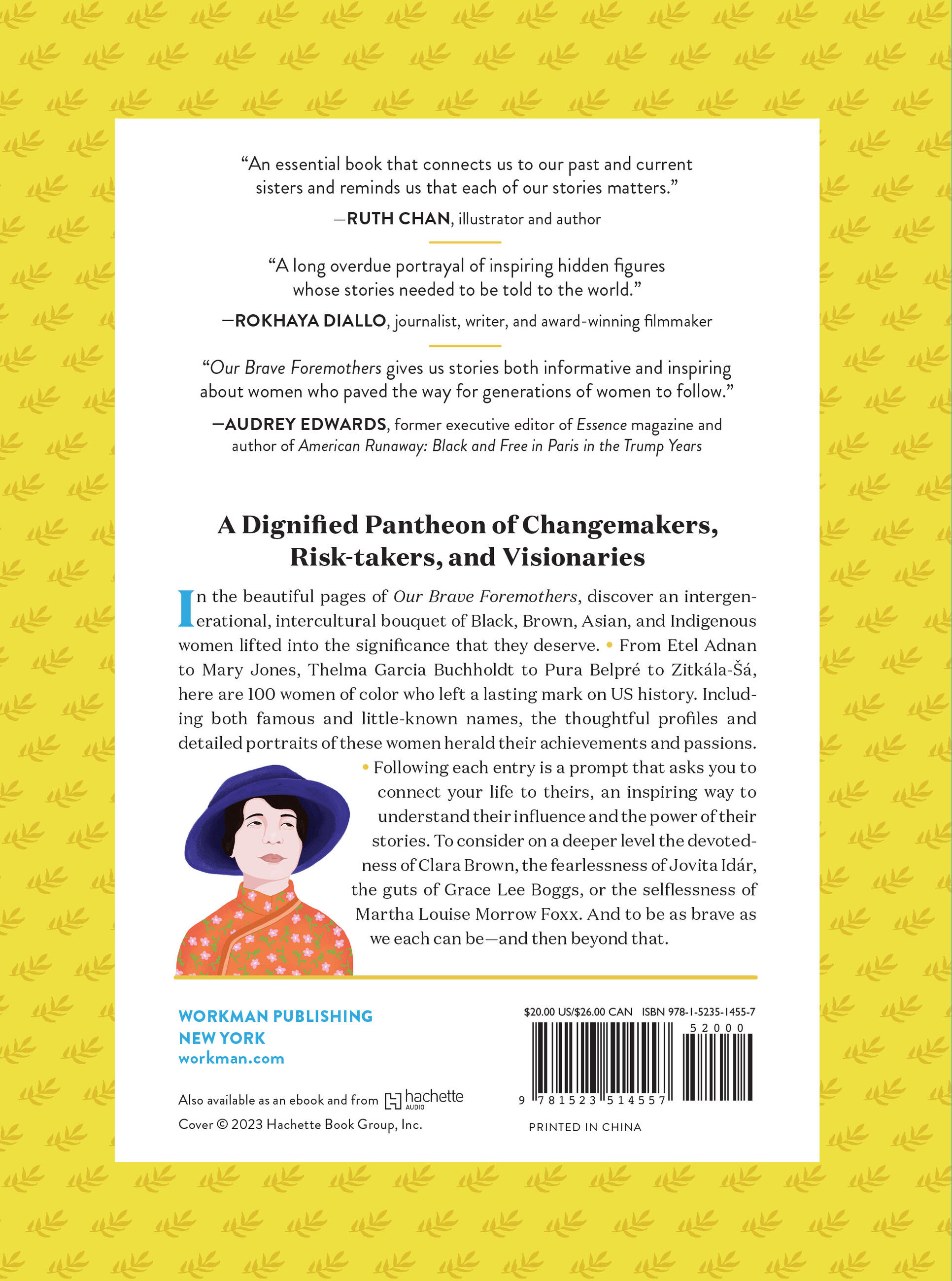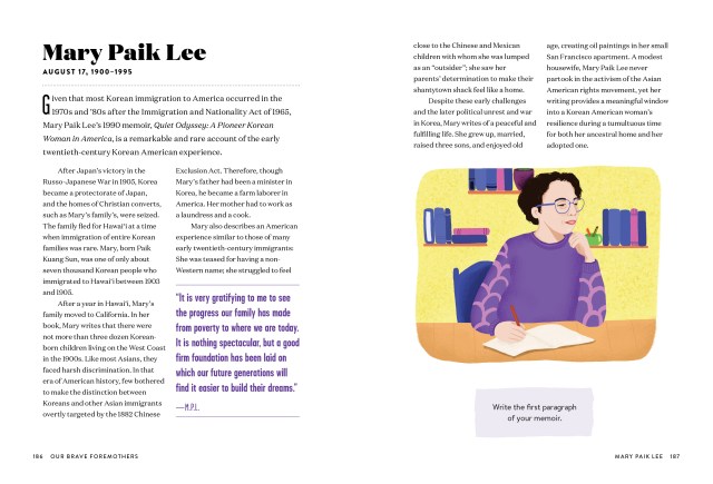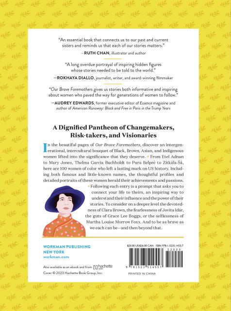 In the beautiful pages of Our Brave Foremothers, discover an intergenerational, intercultural bouquet of Black, Brown, Asian, and Indigenous women lifted into the significance that they deserve. • From Etel Adnan to Mary Jones, Thelma Garcia Buchholdt to Pura Belpré to Zitkála-Šá, here are 100 women of color who left a lasting mark on United States history. Including both famous and little-known names, the thoughtful profiles and detailed portraits of these women herald their achievements and passions. • Following each entry is a prompt that asks you to connect your life to theirs, an inspiring way to understand their influence and the power of their stories. To consider on a deeper level the devotedness of Clara Brown, the fearlessness of Jovita Idár, the guts of Grace Lee Boggs, or the selflessness of Martha Louise Morrow Foxx. And to be as brave as we each can be—and then beyond that.