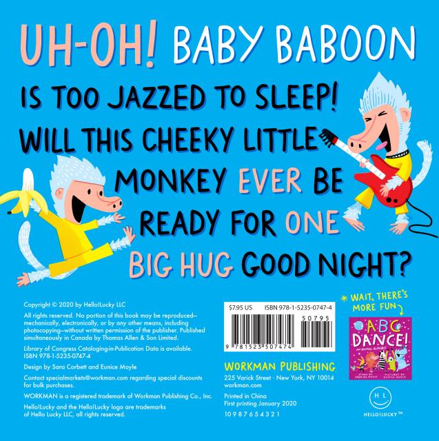Created by Eunice Moyle and Sabrina Moyle, the sister team behind the award-winning design studio Hello!Lucky, Good Night, Baboon! features the bright and appealing style that has made their previous children’s books bestsellers and their stationery and other products so popular across all ages.