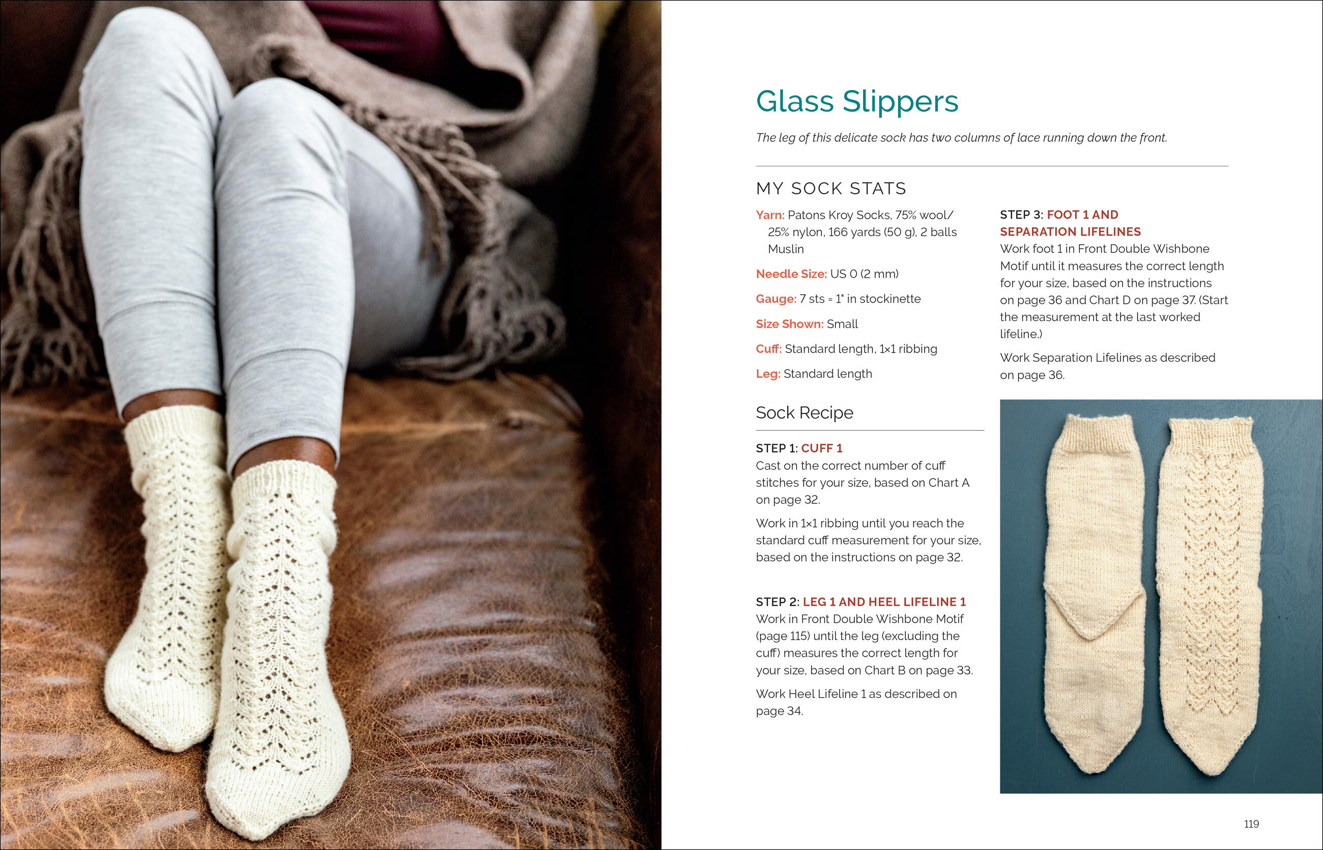 Much like choosing an alternate ending in a classic “Choose Your Own Adventure” book, the knitter can choose from 21 different sock styles, featuring a wide range of stitch patterns, design elements, levels of difficulty, and sizes ranging from child to adult. Knit 2 Socks in 1 is a tried-and-true sock knitting technique that allows knitters from all backgrounds to join in on the fun.