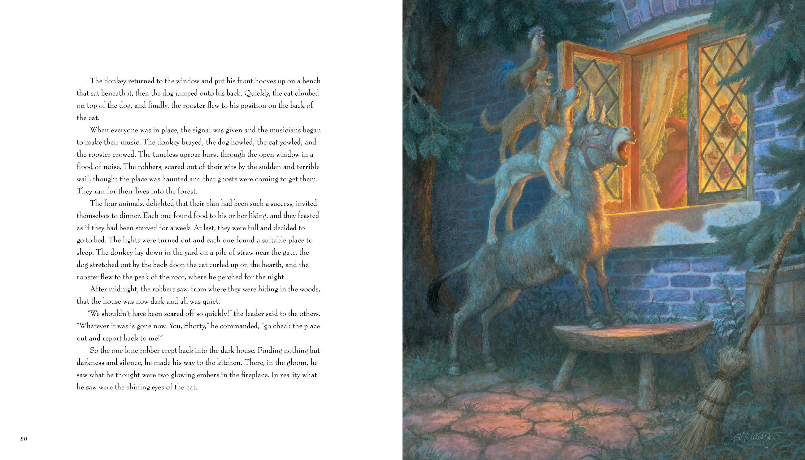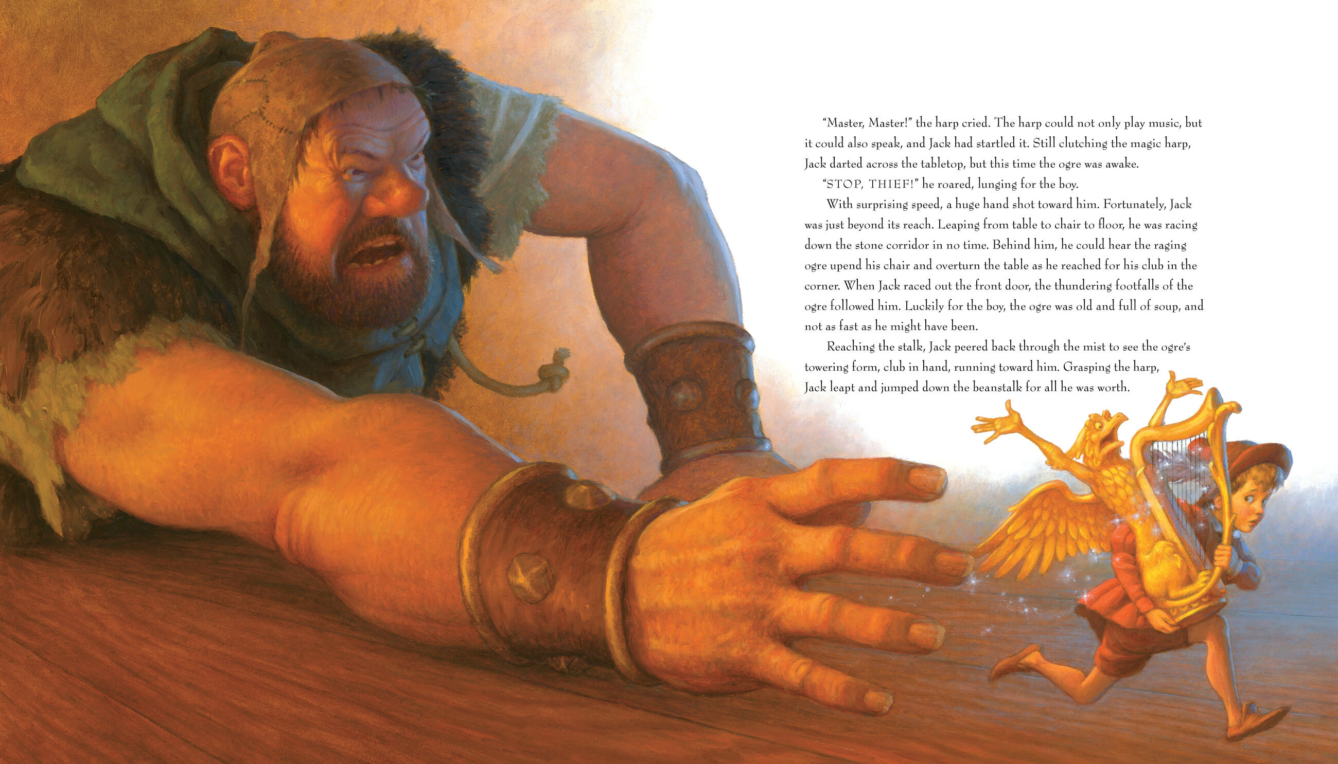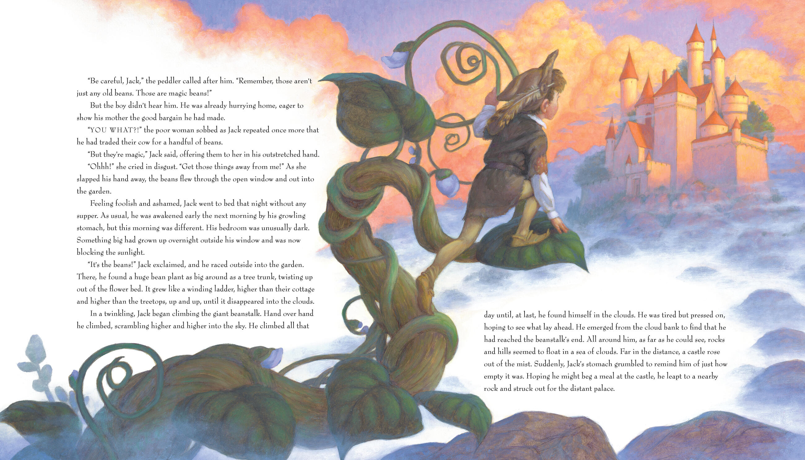Stories such as “Sleeping Beauty,” “Jack and the Beanstalk,” and “Sambha and the Tigers” leap off the page thanks to Gustafson’s exquisite paintings and lively retelling of these classics. “The Lion and the Mouse” and “The Country Mouse and the City Mouse” demonstrate his talent at creating uncanny anthropomorphic characters who keep us smiling even as they teach us about tolerance, diversity, and the Golden Rule.