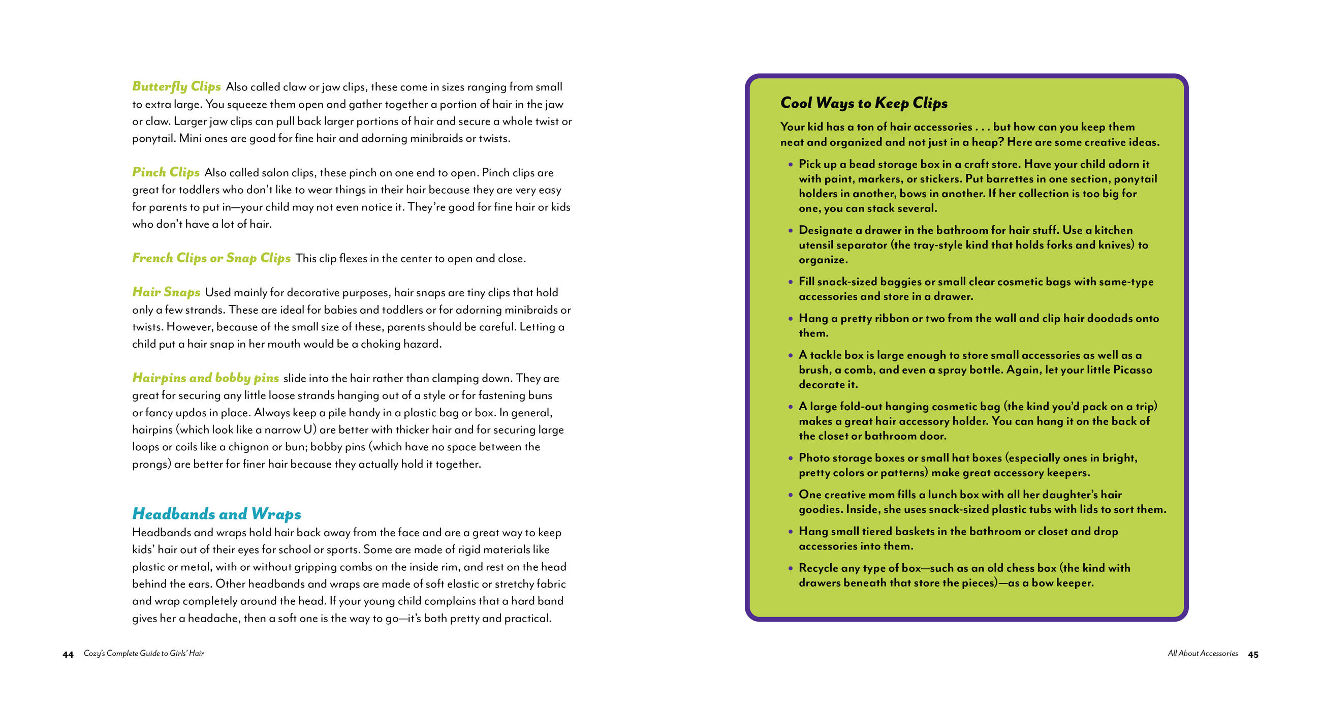 Styling girls’ hair is easy with advice from the owner of Cozy’s Cuts for Kids.Little girls love to have pretty hair, and parents and grandparents can spend hours trying to achieve the best styles for their daughters. This book gives an insider’s look at how to make the task trouble-free and fun for both girls and their caretakers.