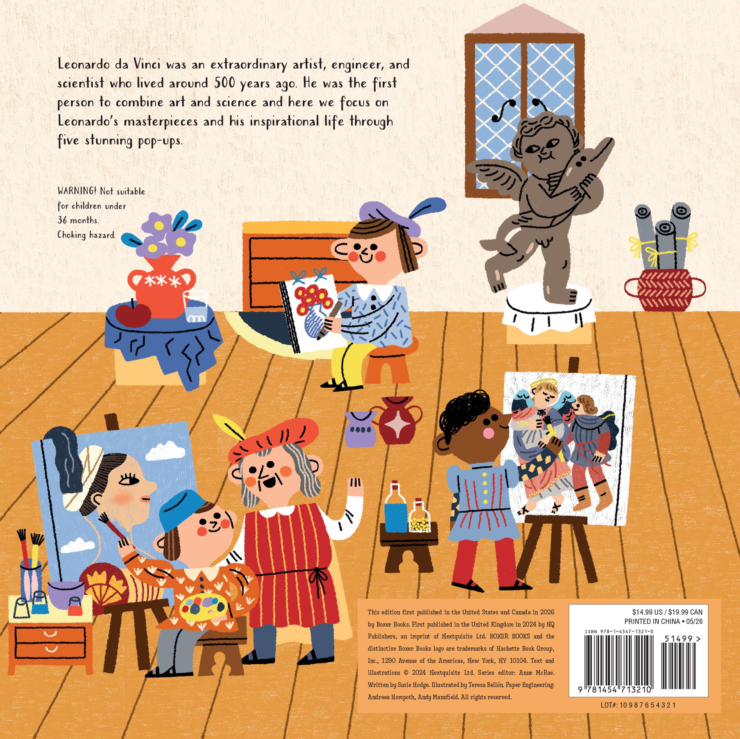 Readers can learn about the life and works of Leonardo da Vinci, including his sculptures, engineering works, and paintings and how he cleverly combined science and art.With beautiful, intricate pop-ups on every spread, young readers will be introduced to the most famous works of Leonardo da Vinci in an interactive and fun way.