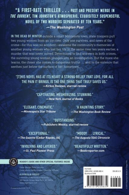 “Johnston delivers a richly atmospheric story whose depictions of the frozen winter landscape reinforce the novel’s theme of individuals unable to move on after loss . . . The Current is, in part, a mystery, but it’s also about everything that is left in a mystery’s wake — the fathers and daughters, mothers and sons facing the tormenting questions surrounding their dead or disappeared loved ones. It is an examination of the way tragedies divide but can also offer the opportunity to bring people together, ushering in the inevitable thaw that can reveal the path toward moving forward and healing.”